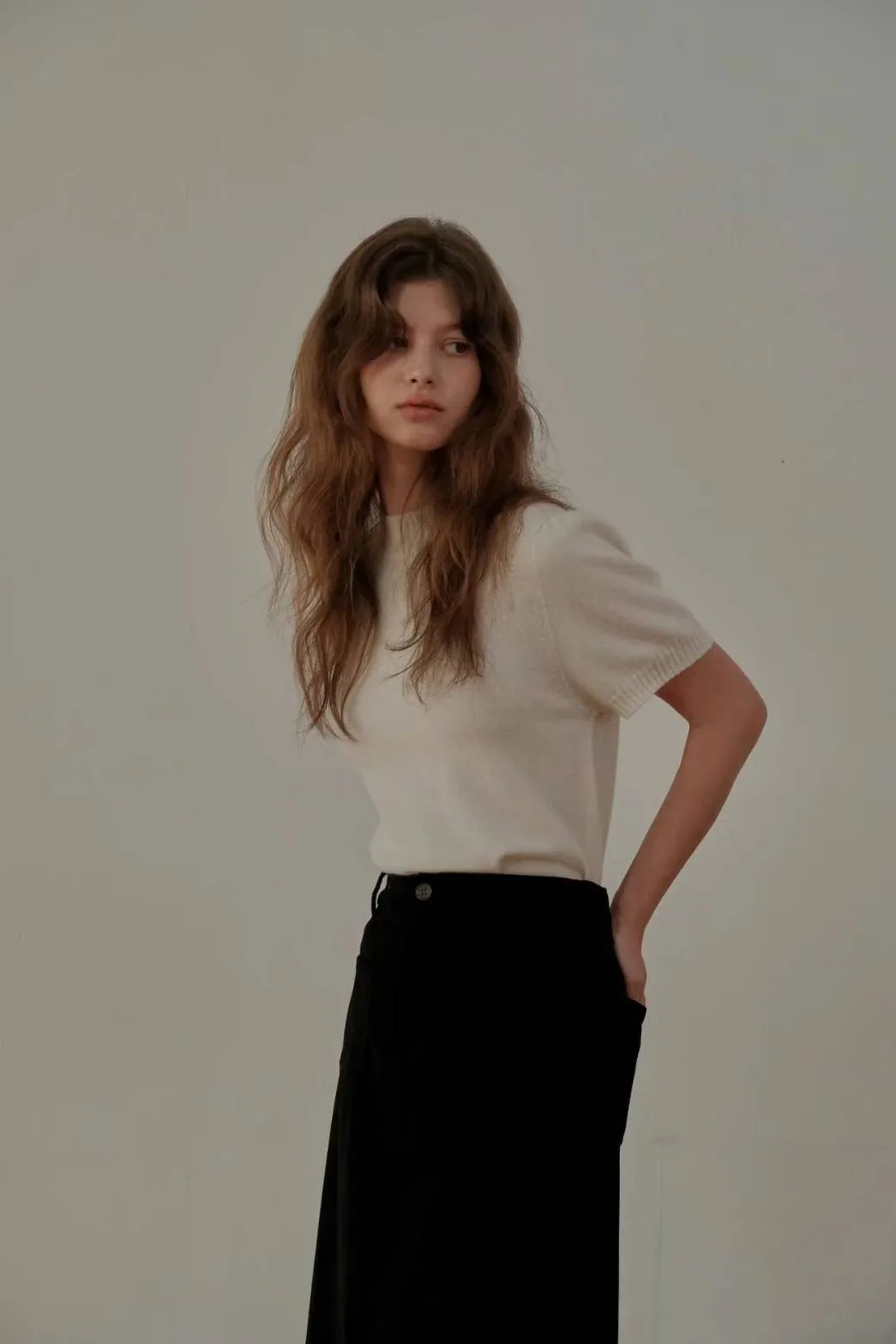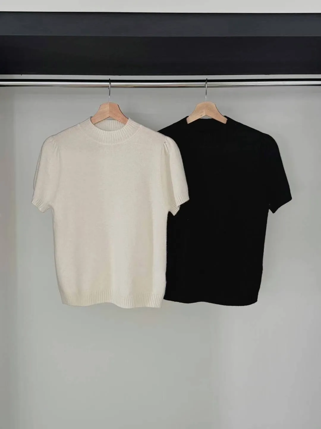 BS754喀什米爾短袖上衣 白 黑 官網價$1070 線上價$1030