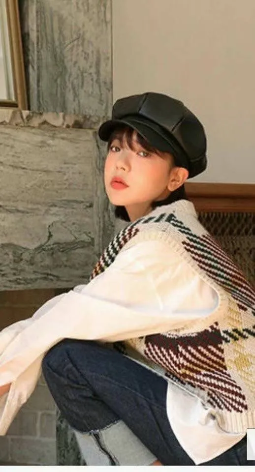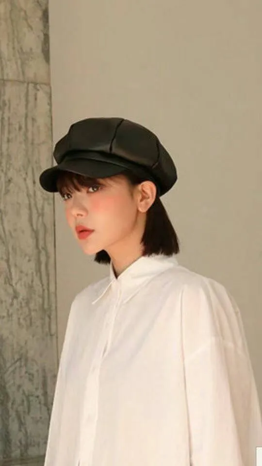 合成皮革 報童帽 硬挺帽簷 可調頭圍 柔軟皮革