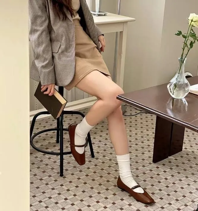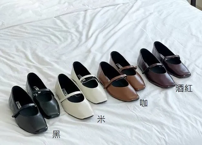 BS786橫條平底瑪莉珍鞋 米 咖 黑 酒紅 225-250(有半號) $760