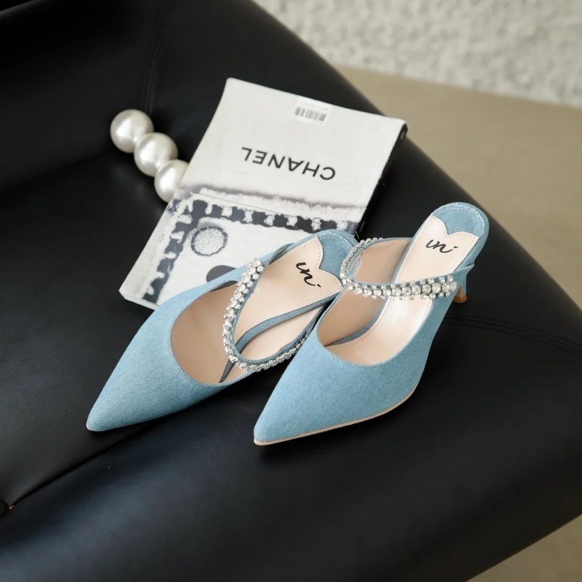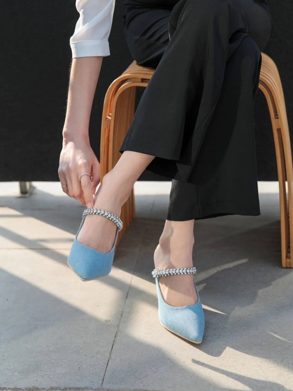 BS794許願款水鑽高跟鞋 米 藍 黑亮皮 黑透膚 225-250(有半號) $1250