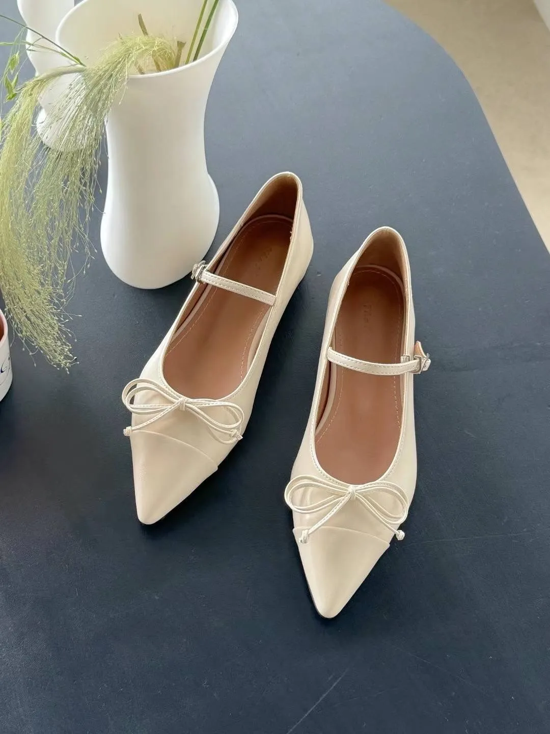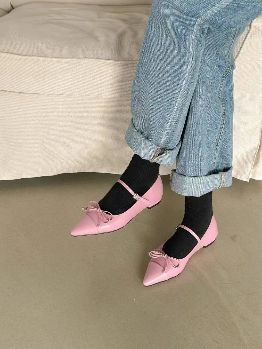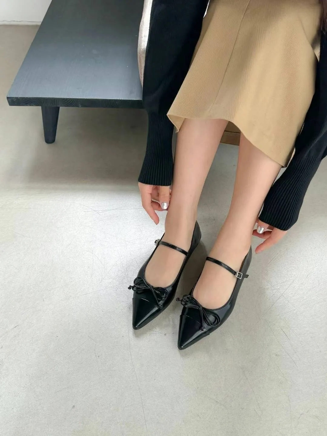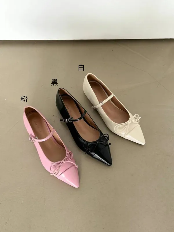 BS803蝴蝶結尖頭鞋 白 粉 黑 230-250(有半號) $920