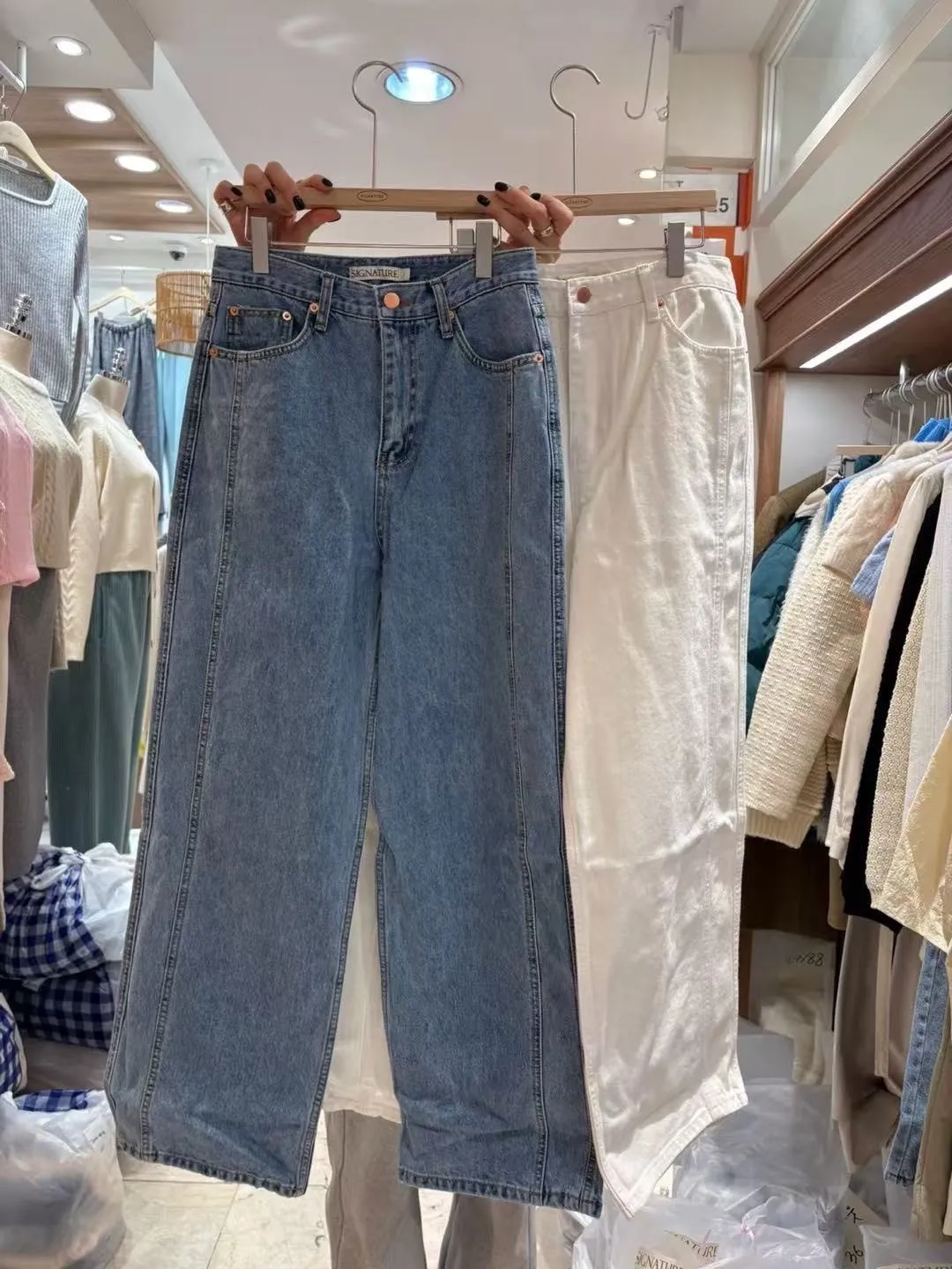 BY007特價側車線牛仔長褲 藍 白 S L 特價$890