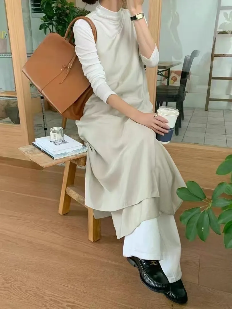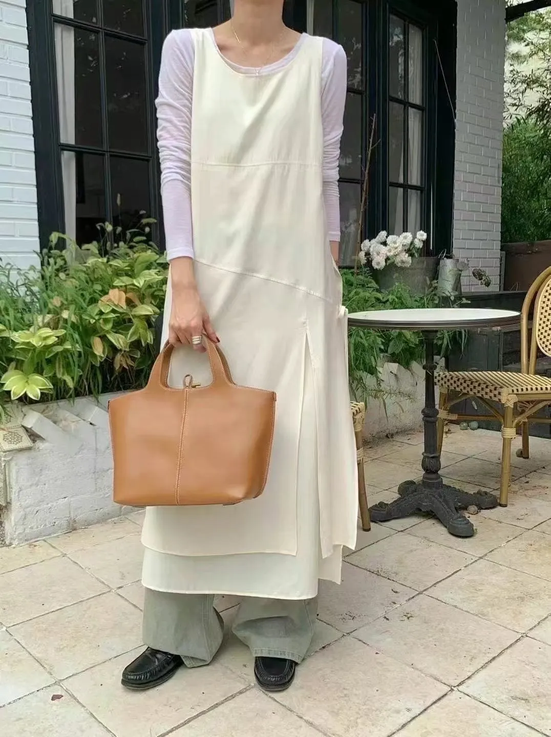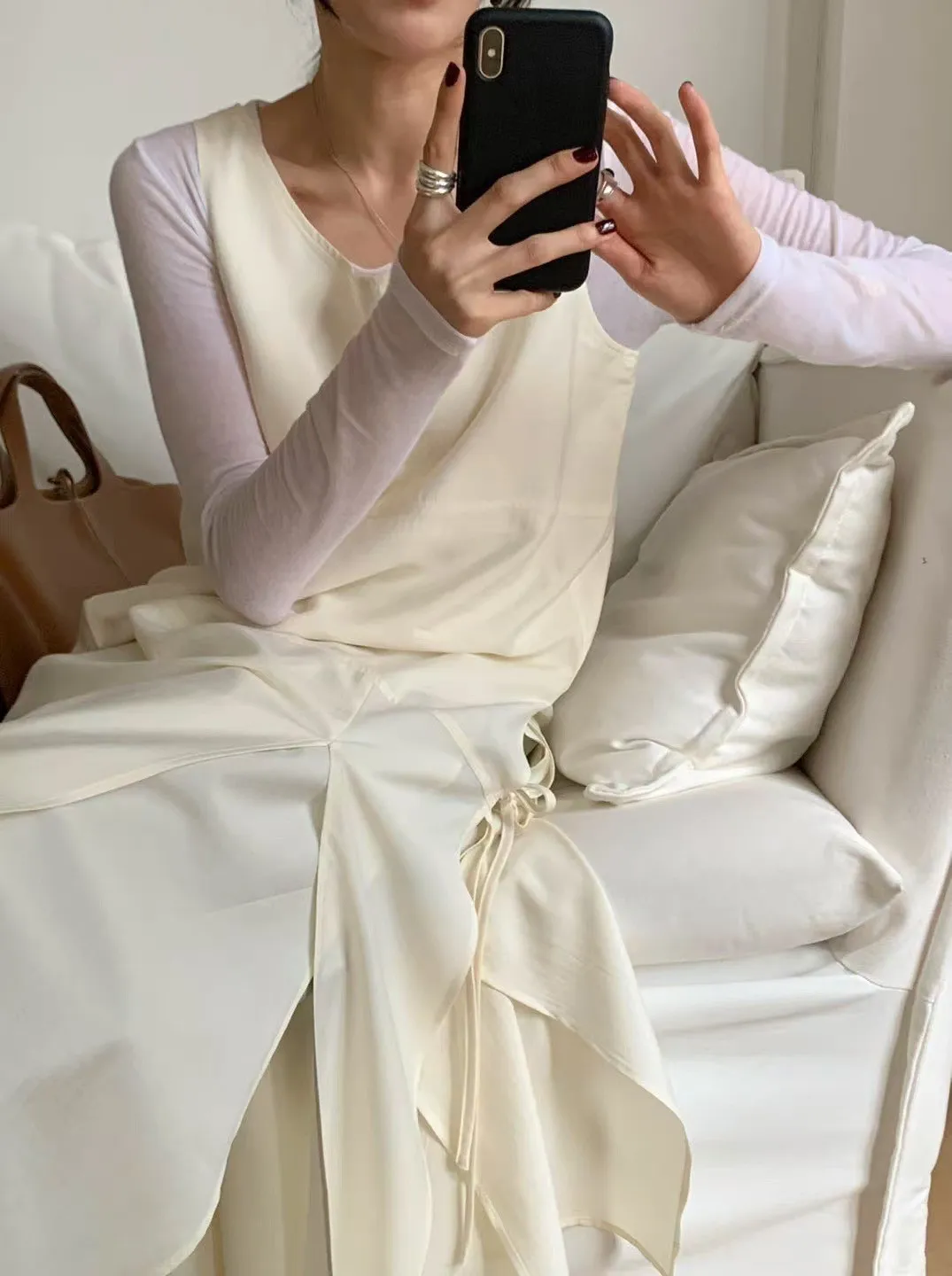 BY029特價圓領層次下擺無袖洋裝 米 奶茶 特價$699