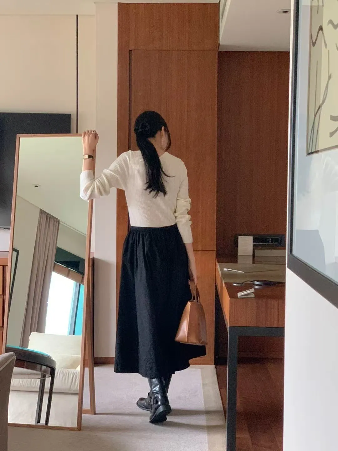 Y033特價腰綁帶傘擺黑色裙子 S M 特價$699
