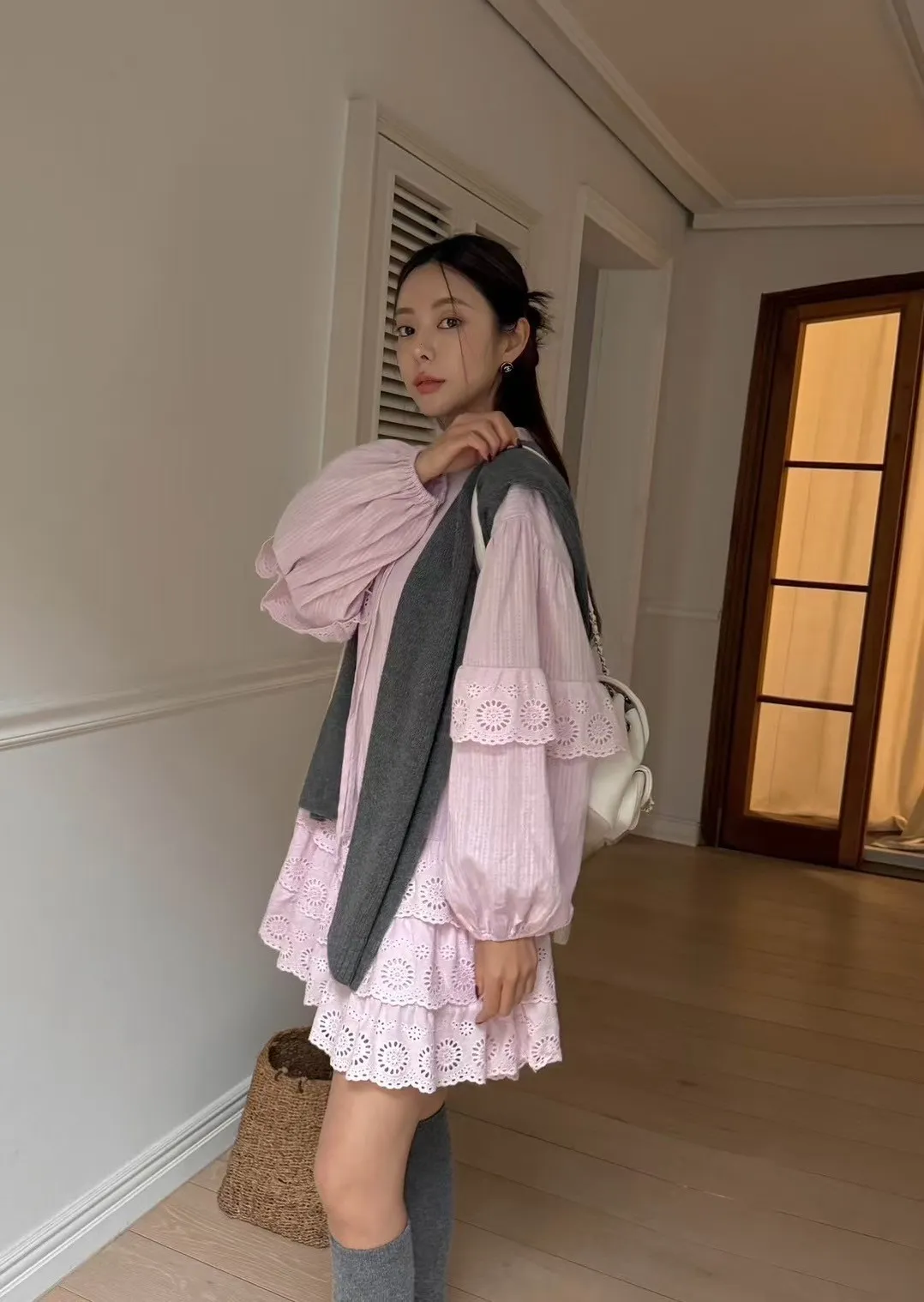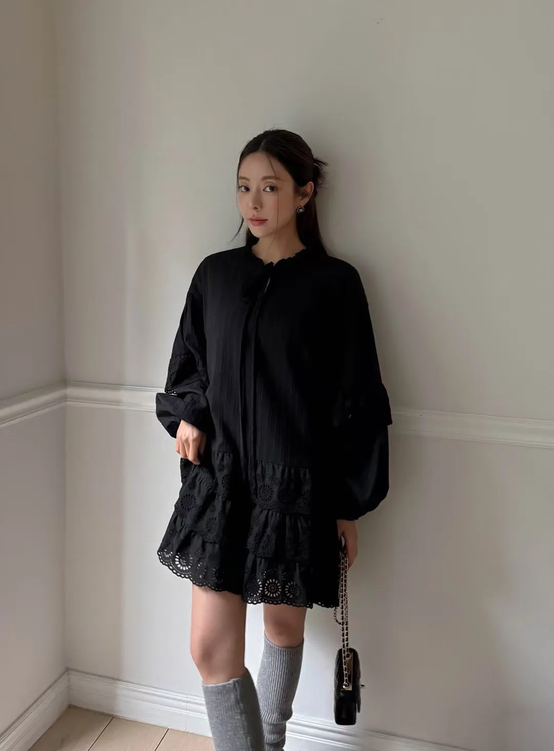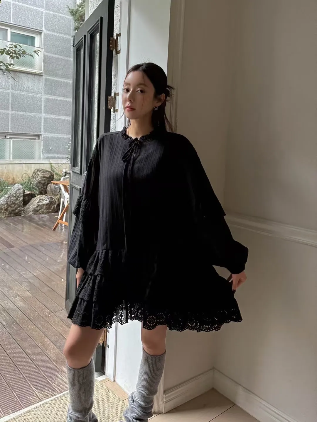 BY047特價胸綁帶蕾絲洋裝 粉 黑 特價$1280