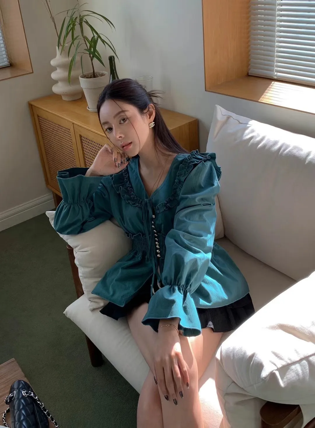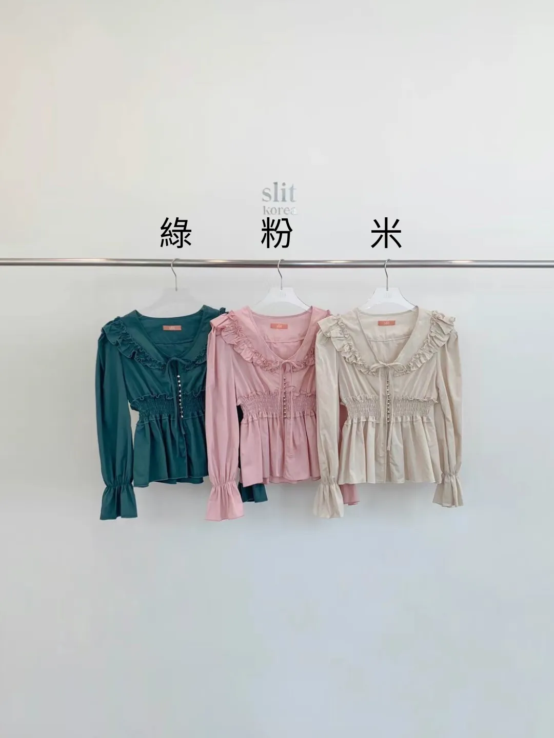 BY052特價荷葉氣質上衣 米 綠 粉 特價$990