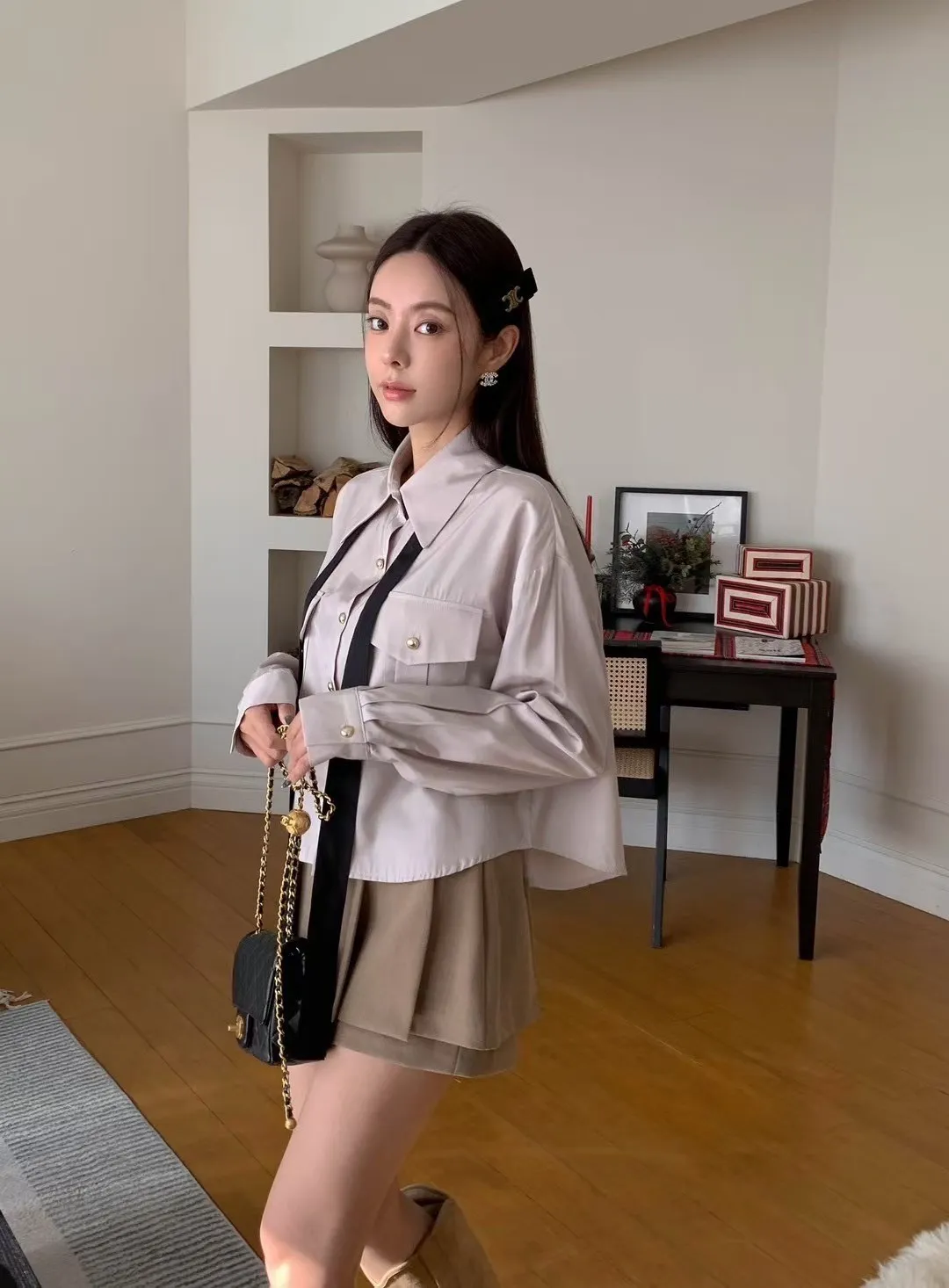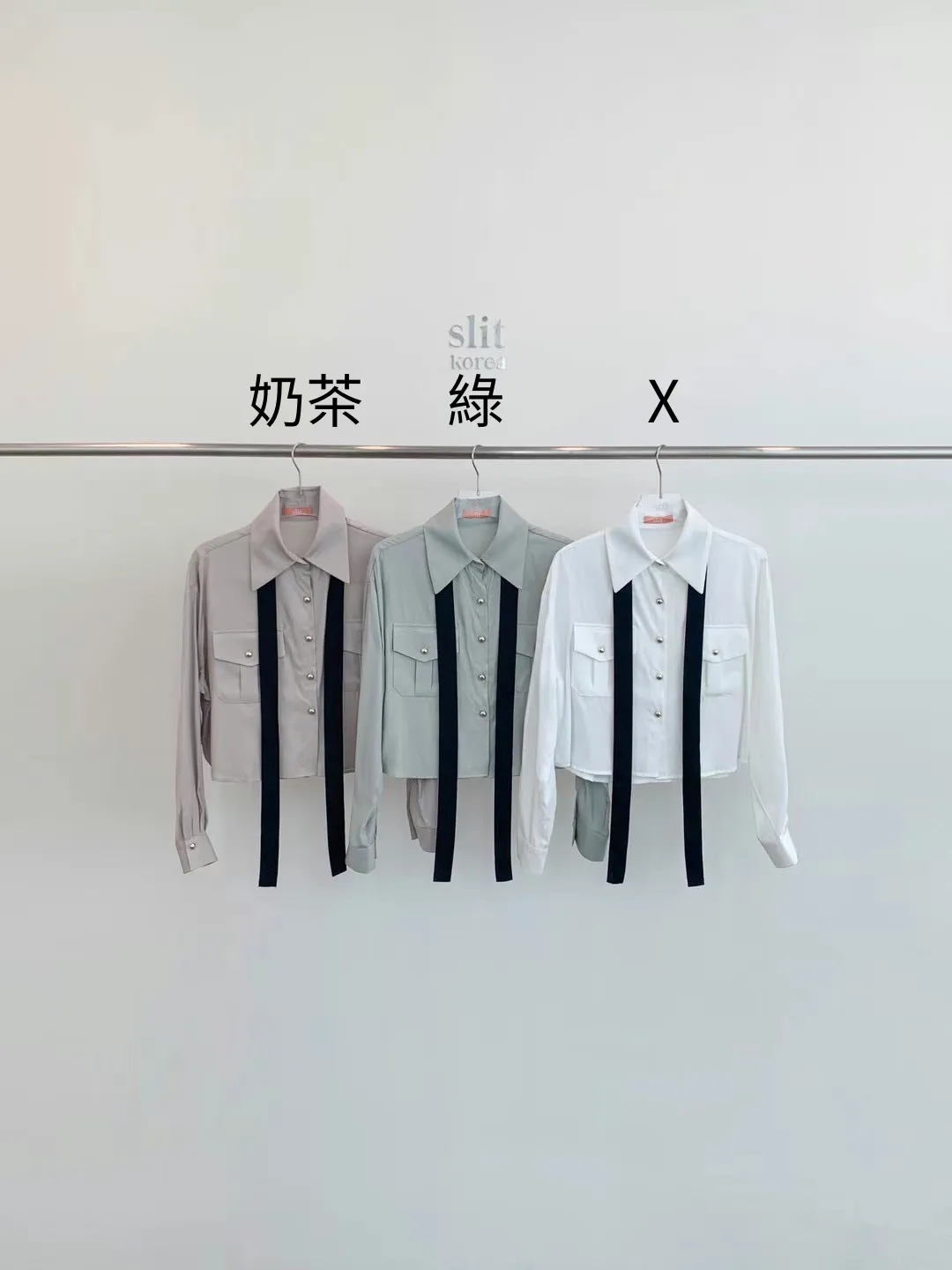BY067特價胸綁帶雙口袋上衣 綠 奶茶 特價$830