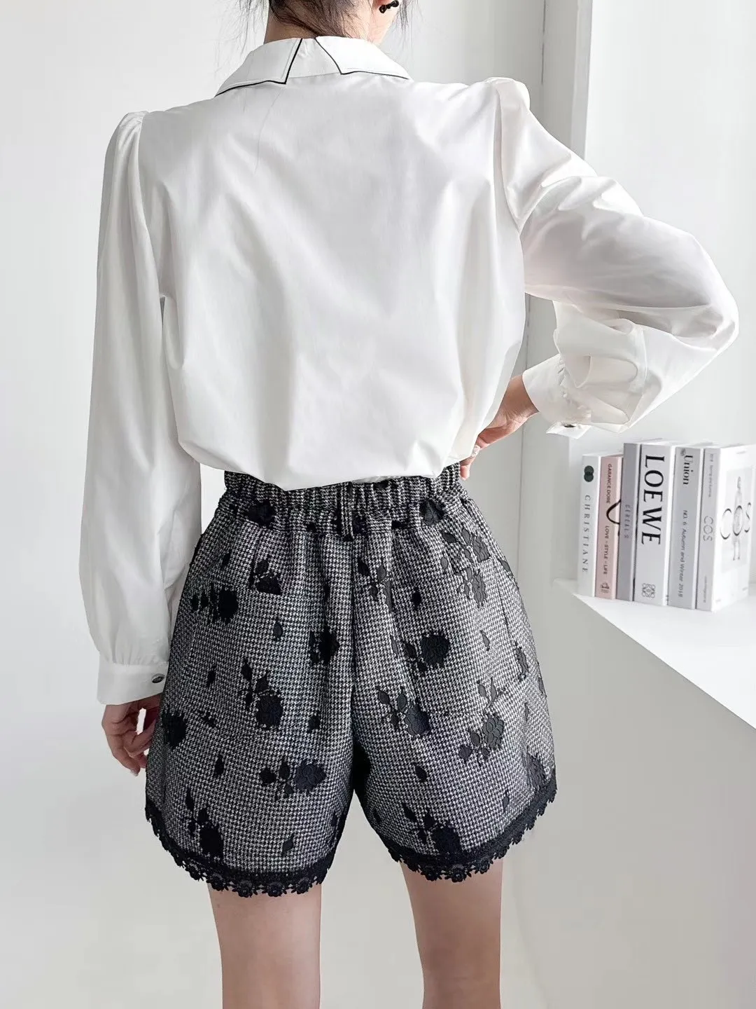 BY121玫瑰蕾絲雙層精緻短褲 黑 奶茶 官網價$1190 線上價$1160