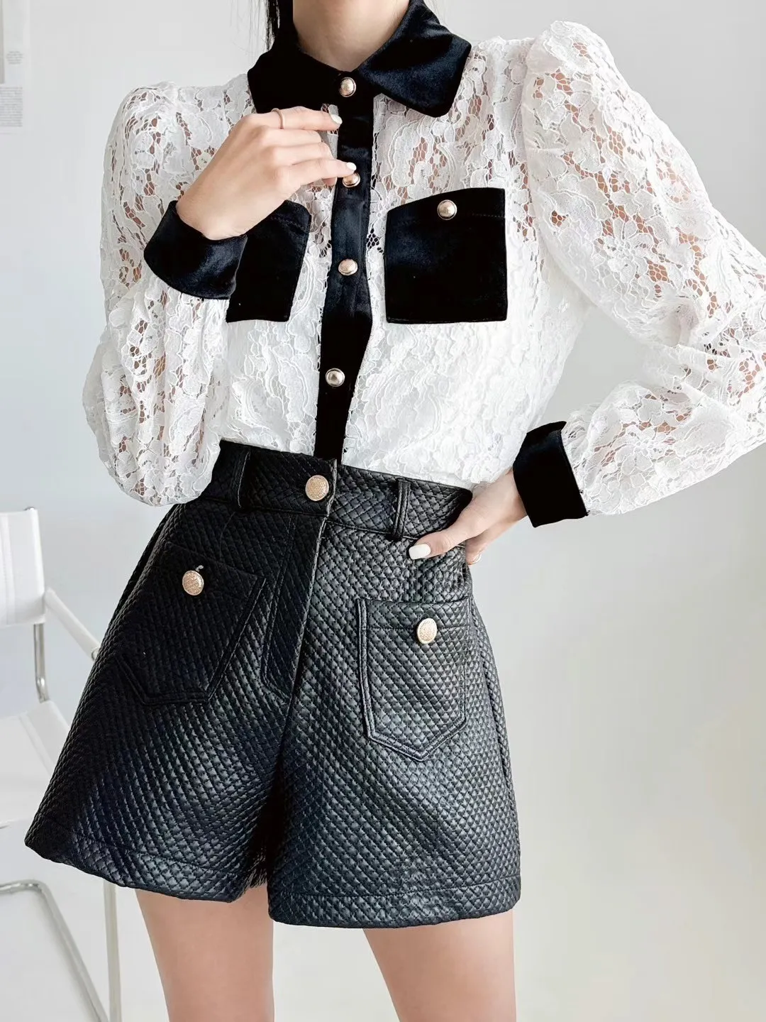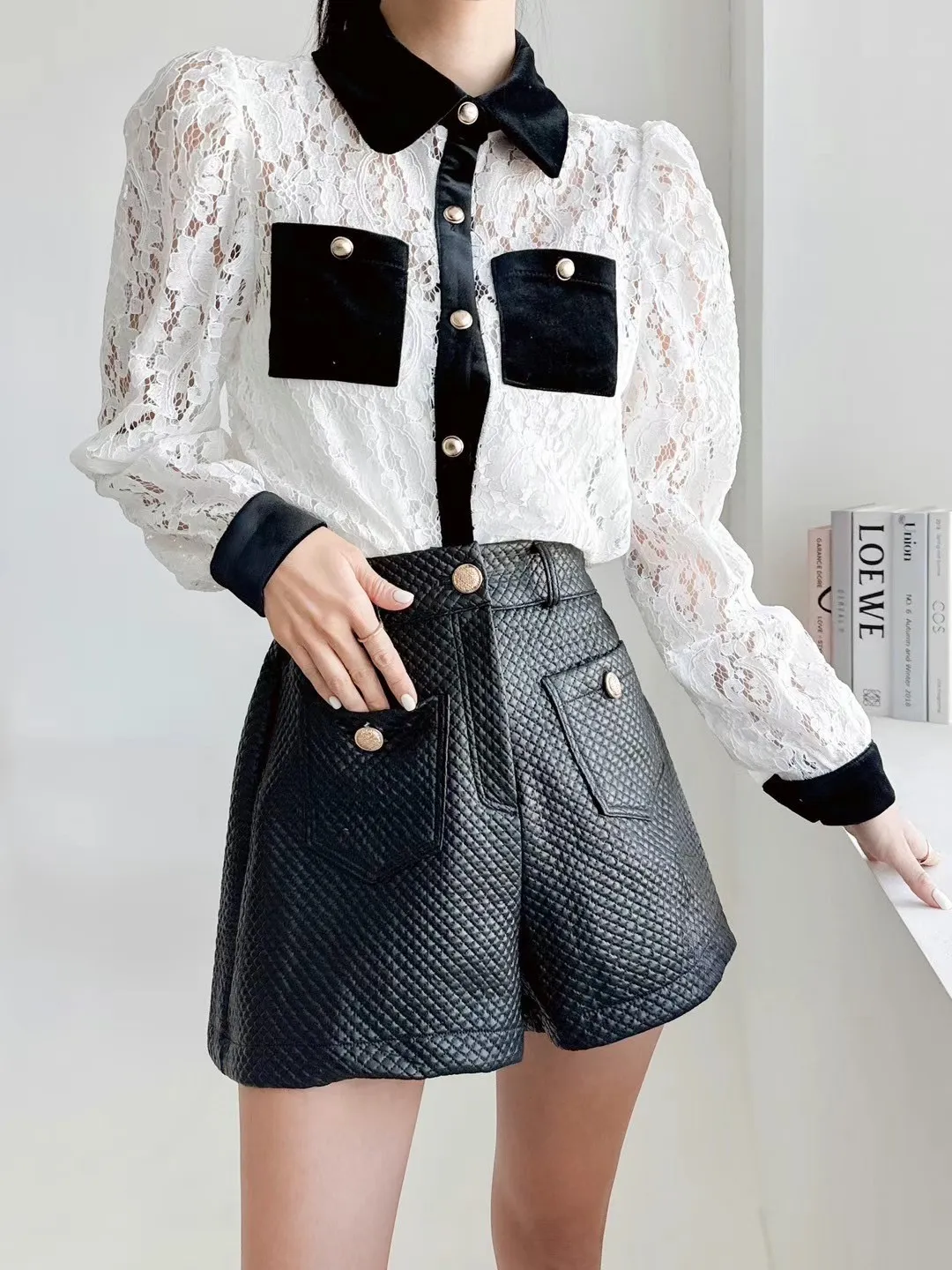 BY129雙口袋金釦皮革黑色短褲官網價$1100 線上價$1070