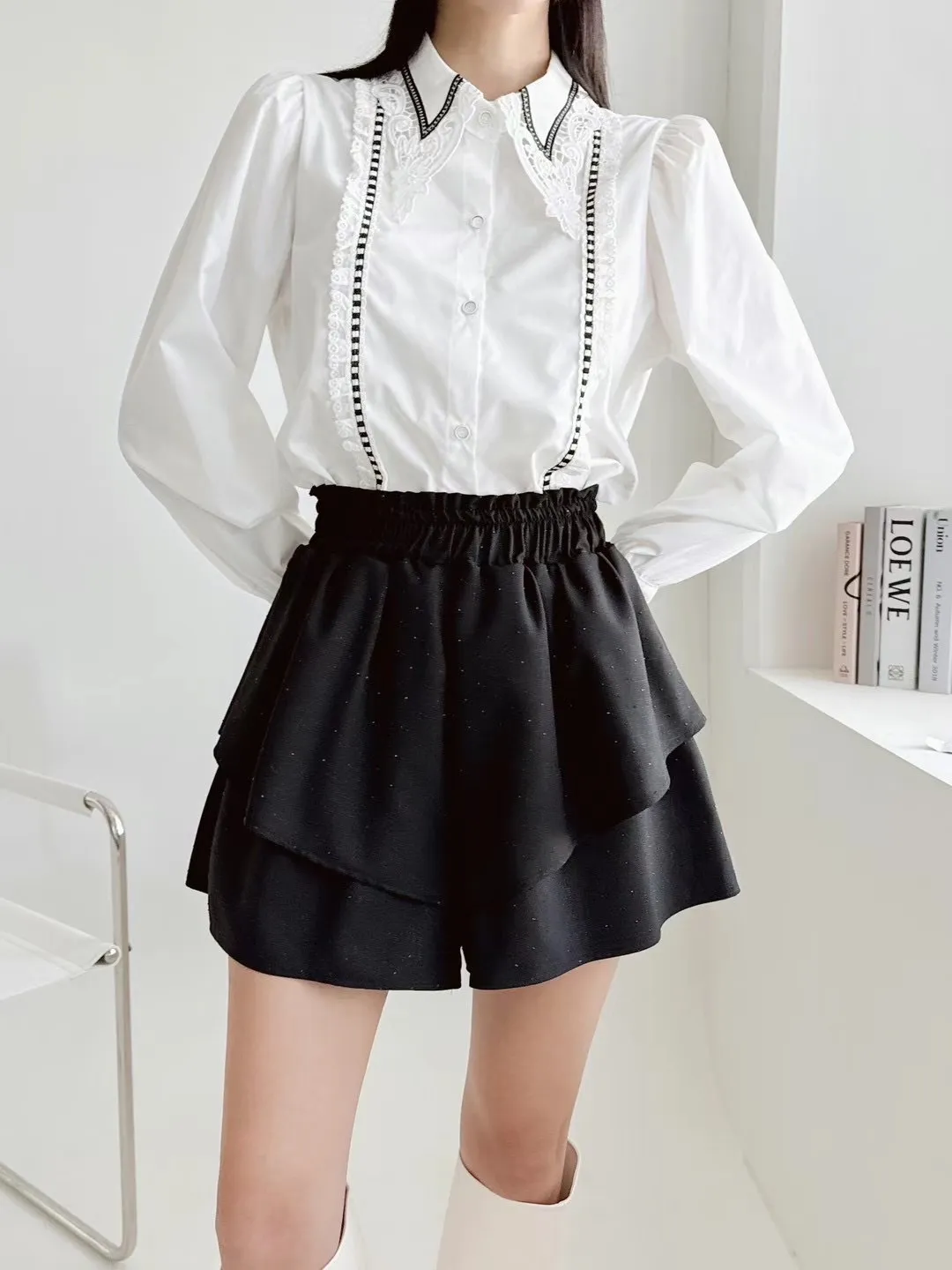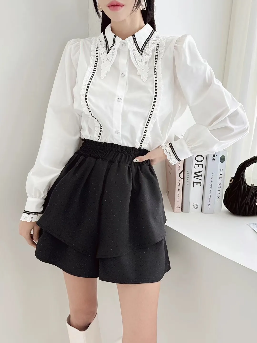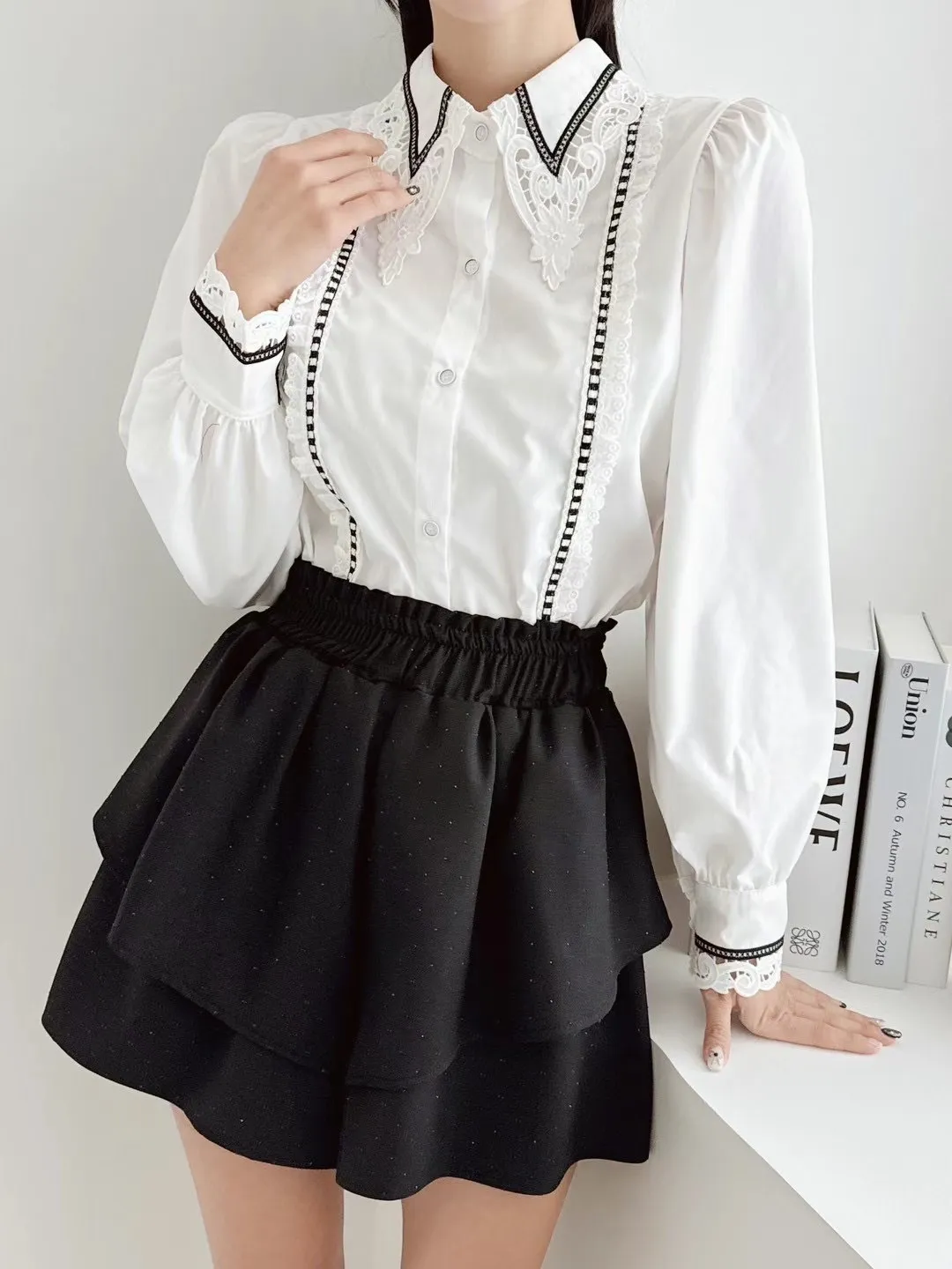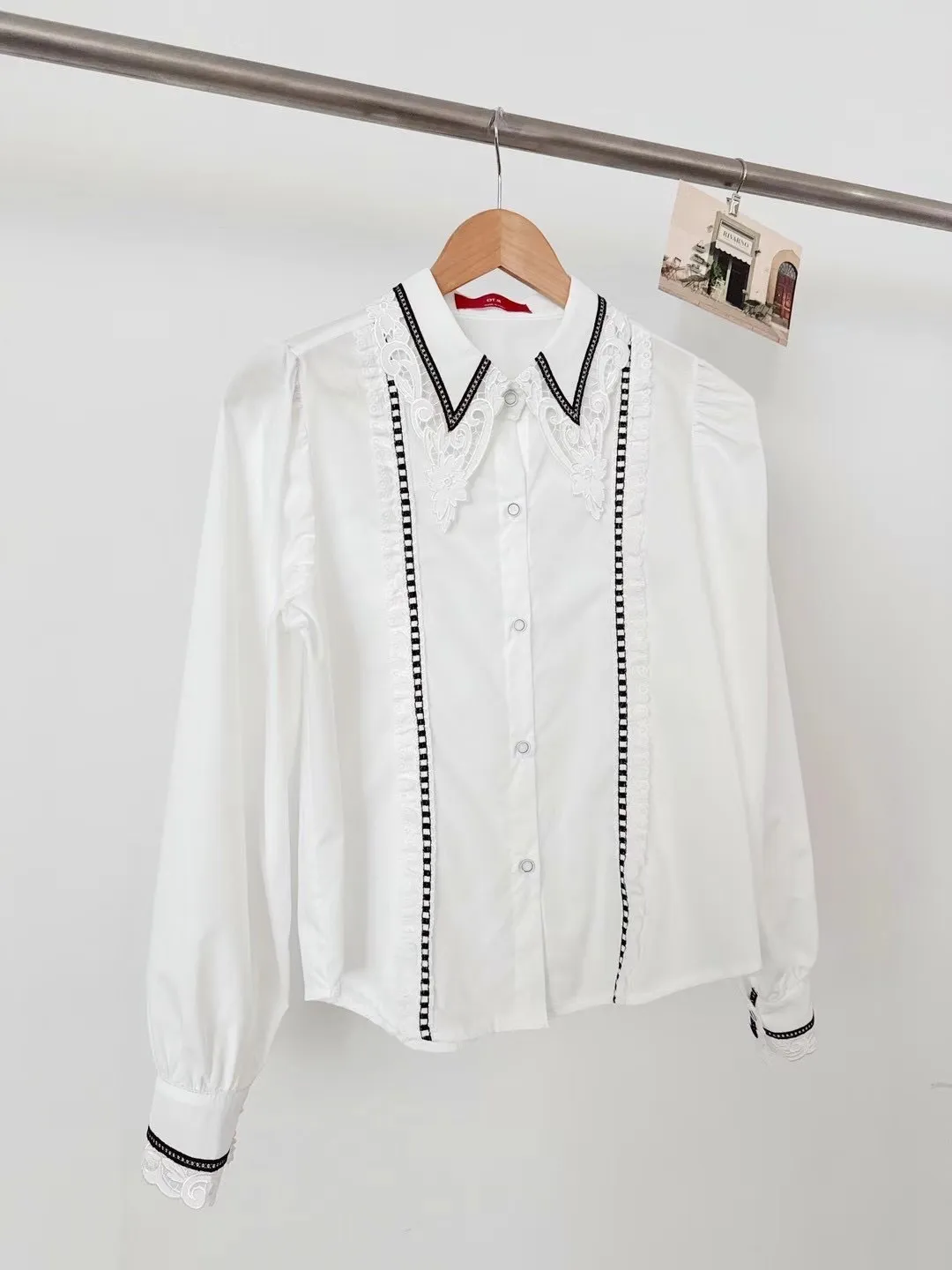 BY132法式經典白黑階梯蕾絲美領上衣 官網價$1290 線上價$1260
