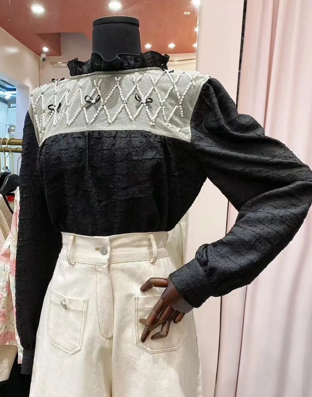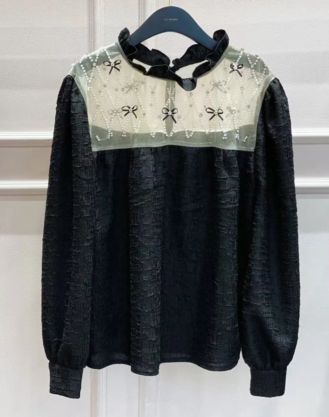 BY134珍珠鑲鑽蝴蝶結透光美衣 官網價$1190 線上價$1160
