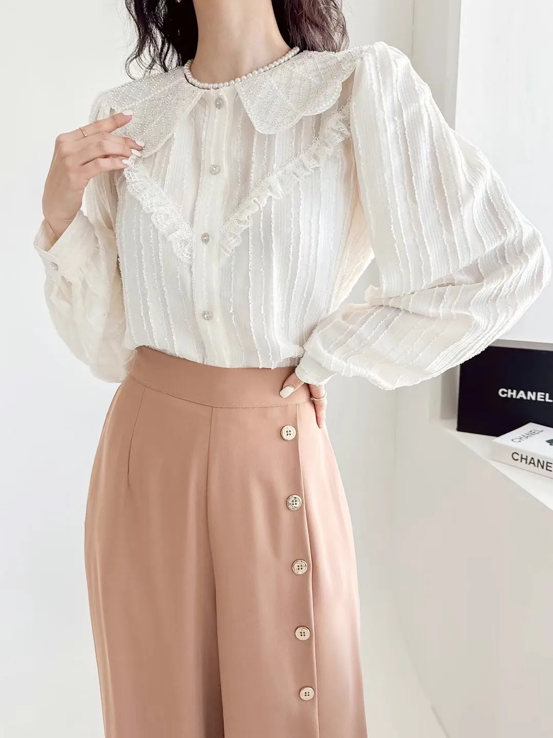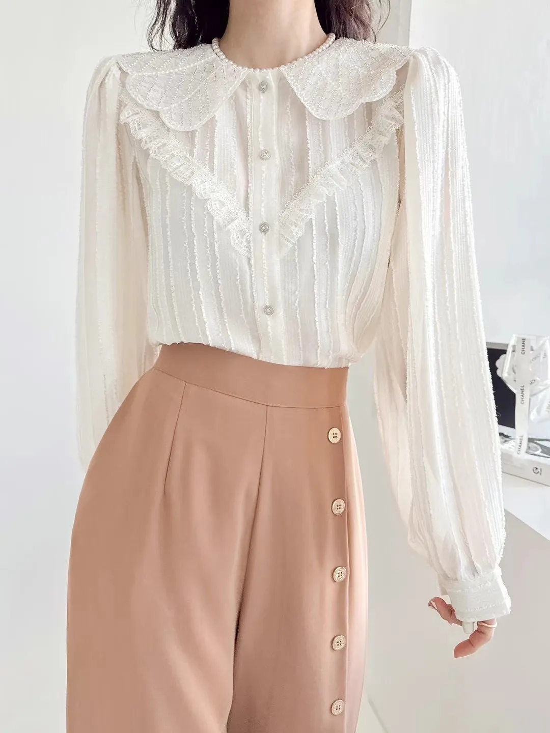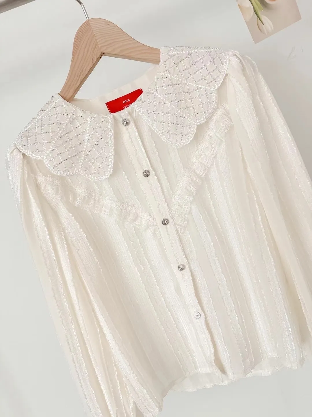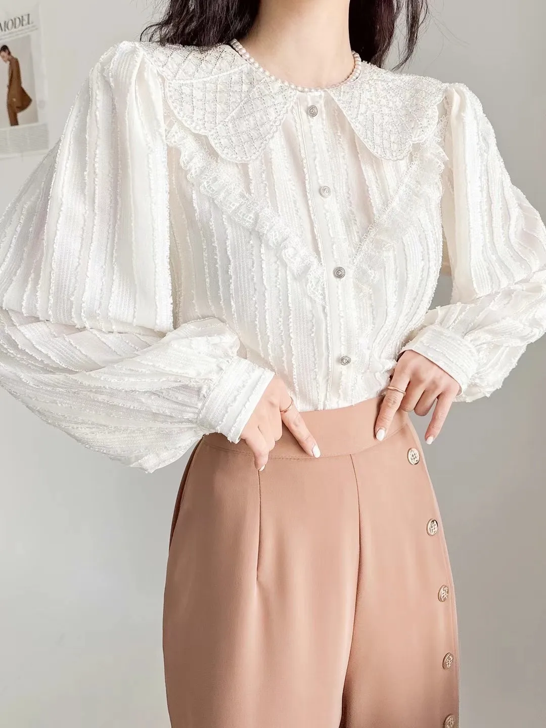 BY137高級美晶翻領蕾絲氣質上衣 官網價$1290 線上價$1260