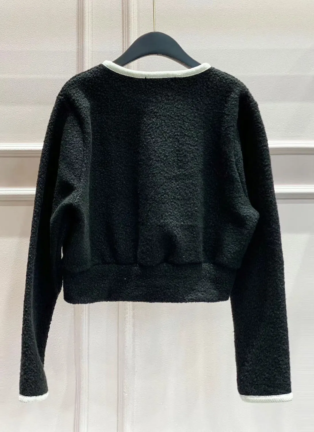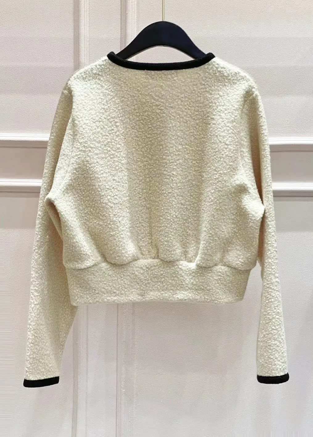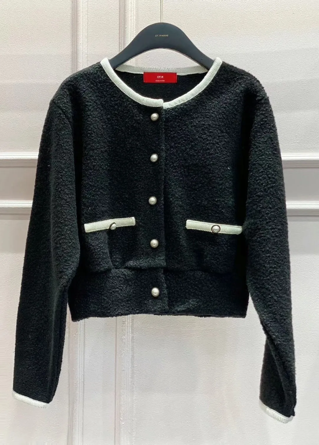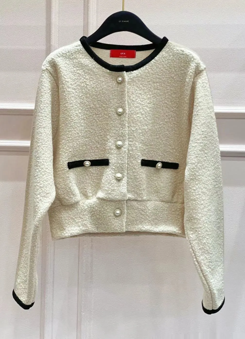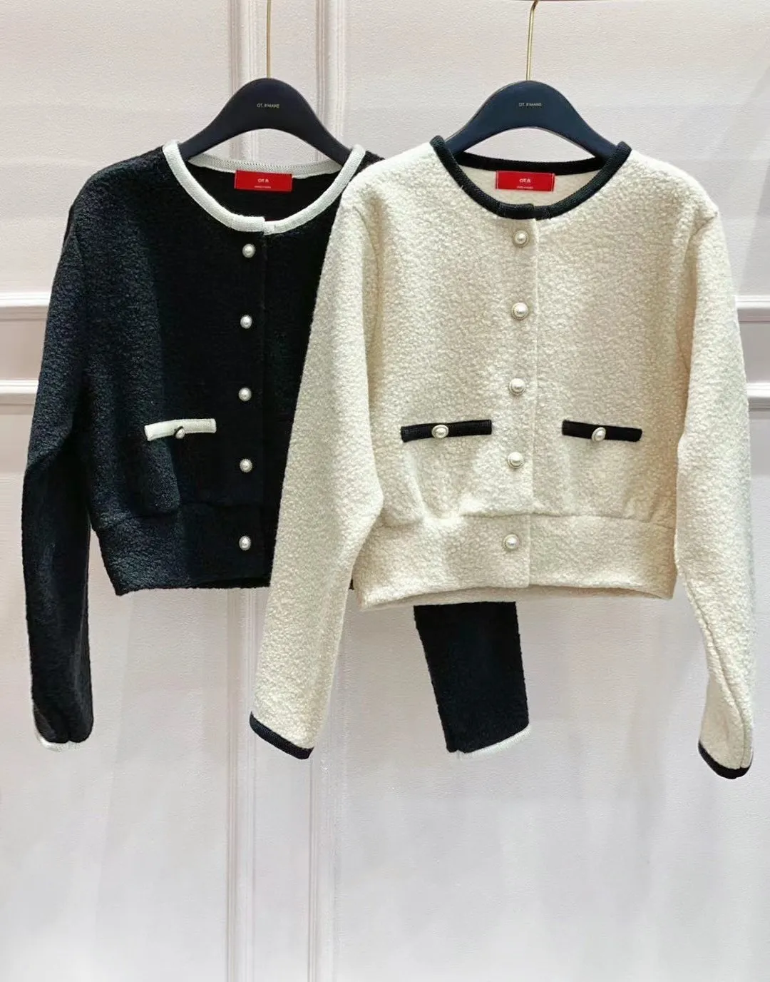 BY143優雅珍珠釦小香風外套 米 黑 官網價$980 線上價$950
