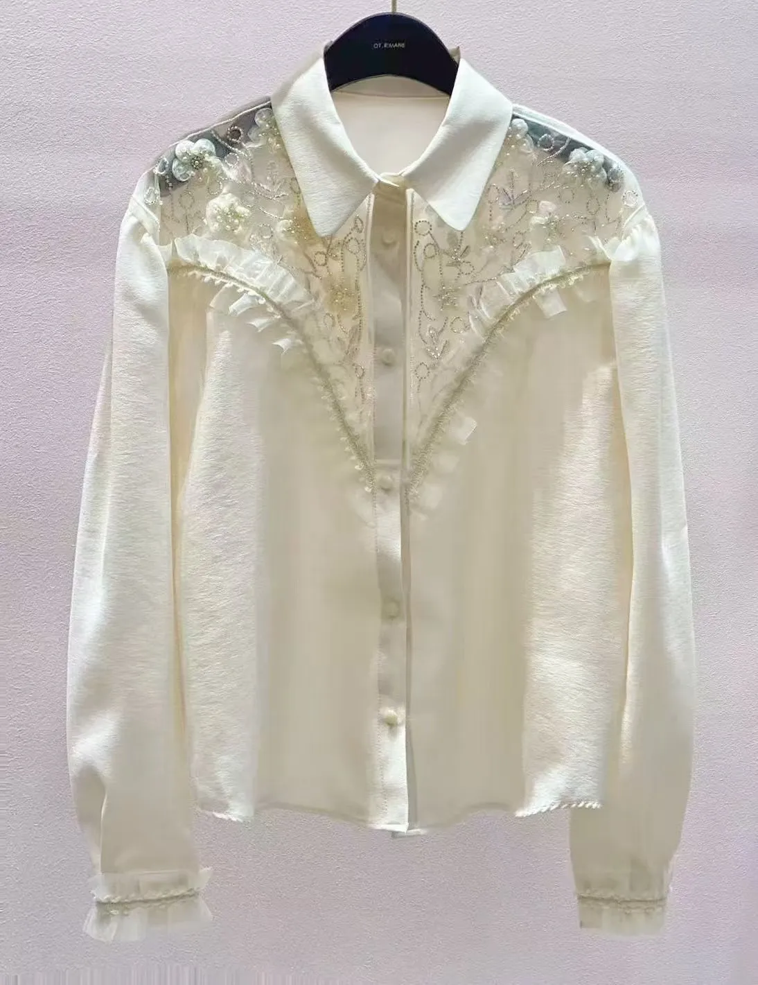 BY144精緻銀絲花葉歐根紗上衣 官網價$1280 線上價$1250