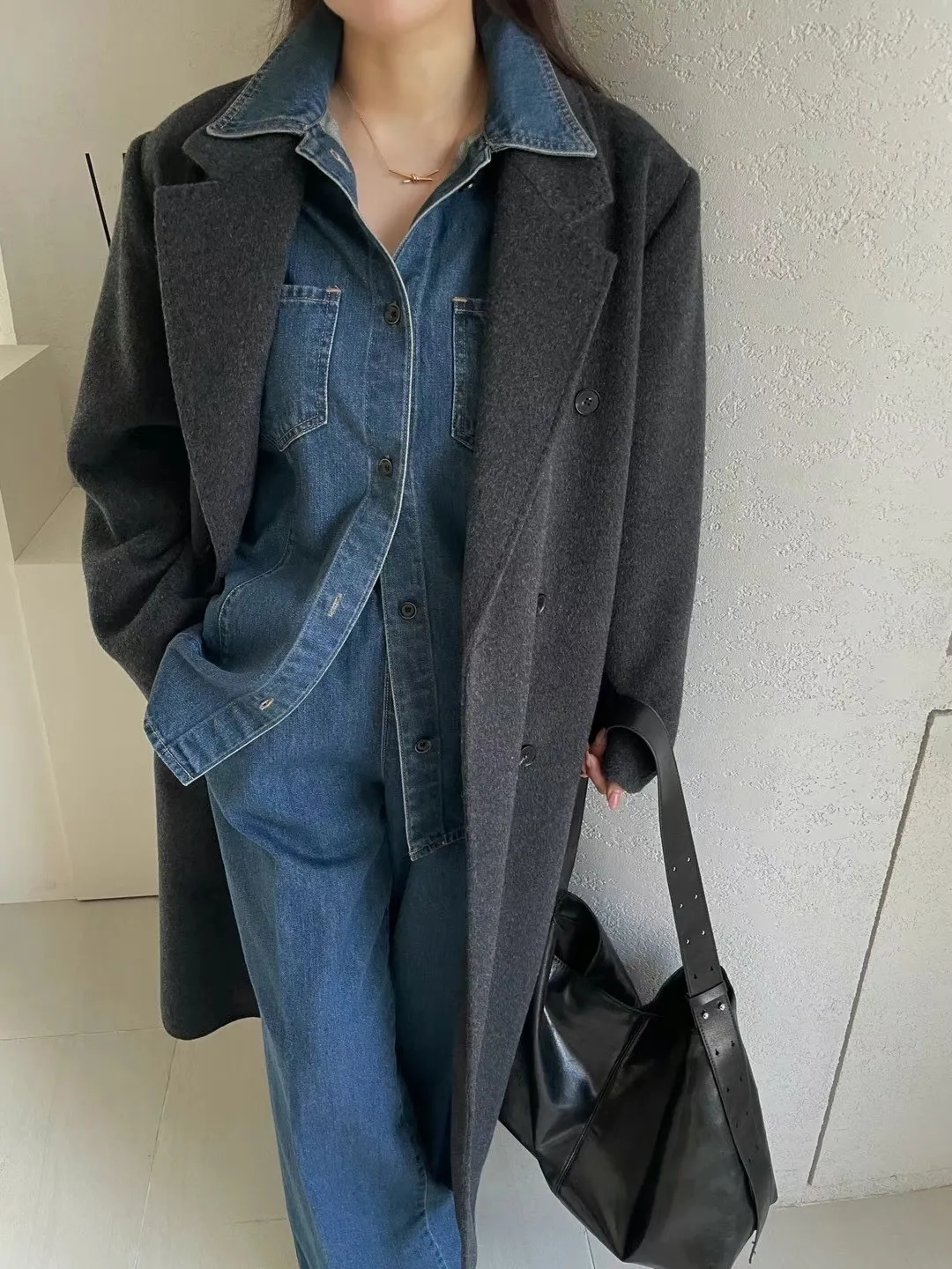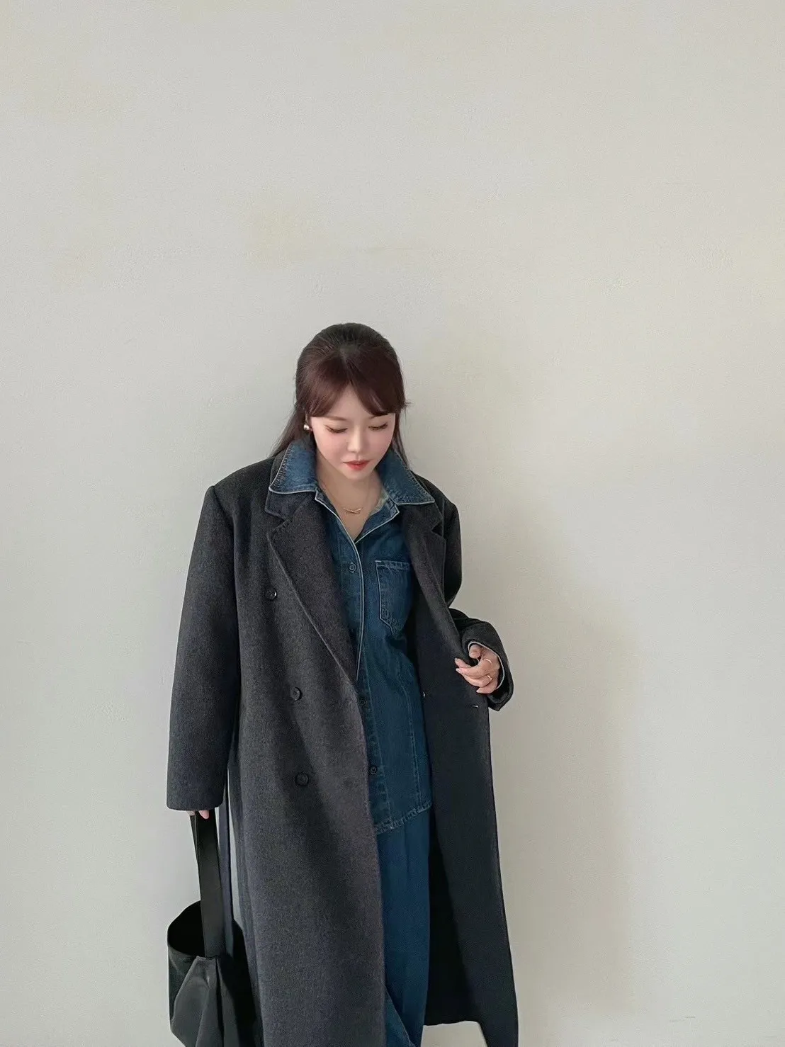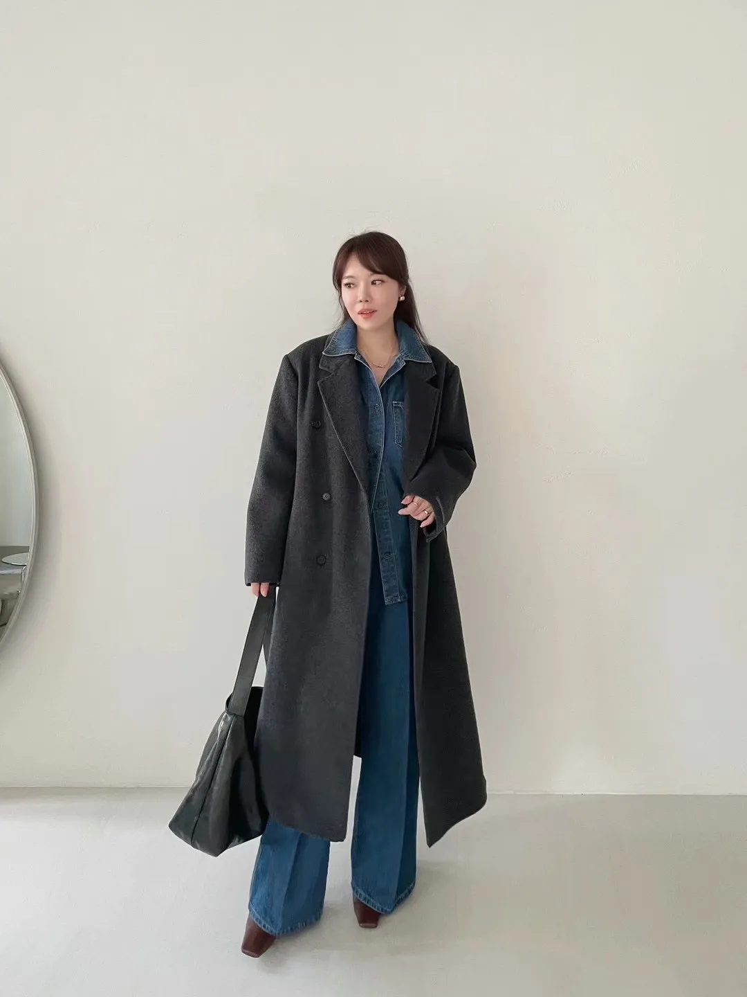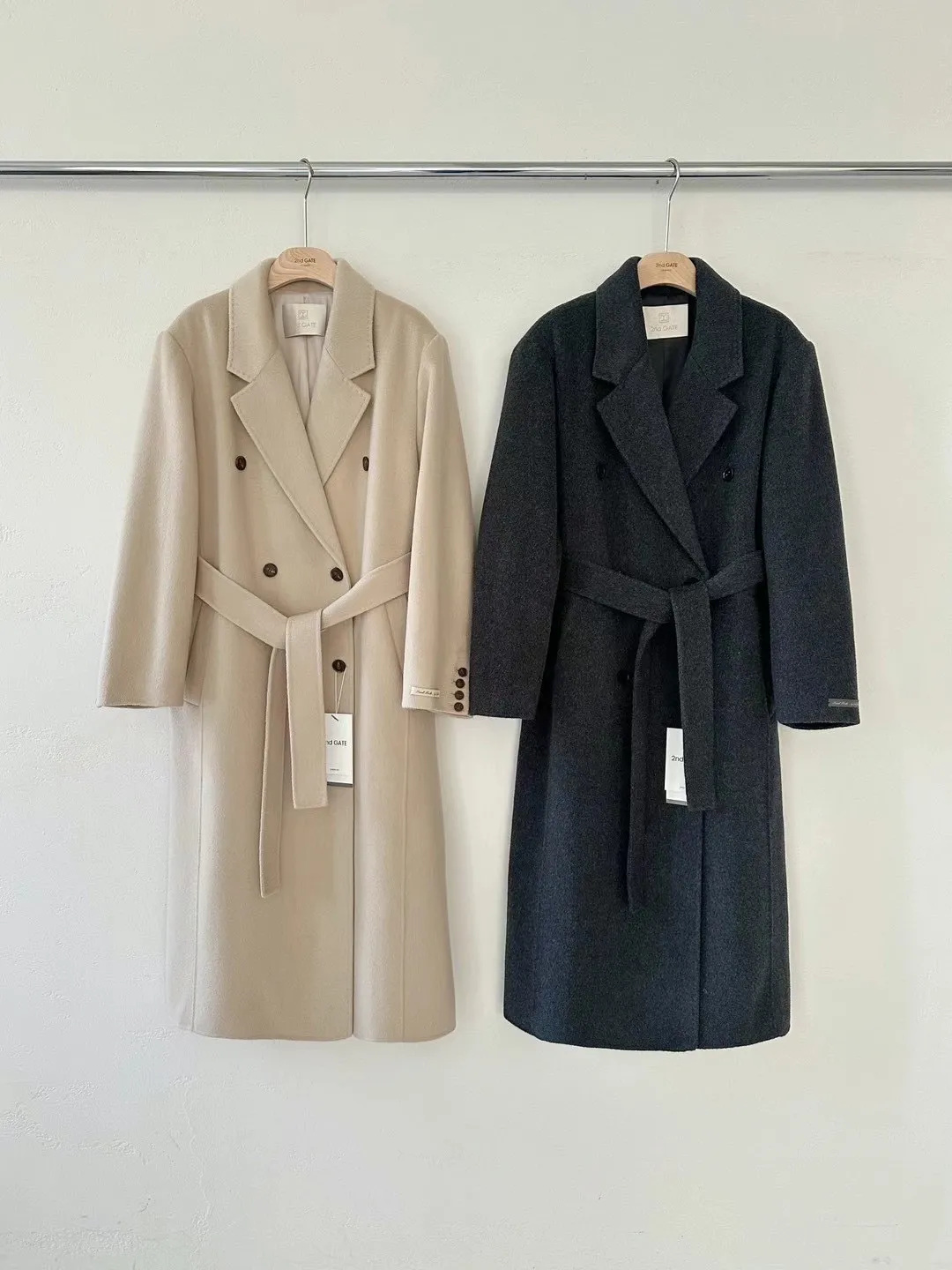 BY196特價羊毛100%手工長版外套 灰 奶茶 原價$6200 特價$3850
