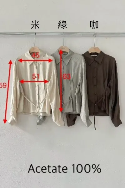 BY220特價光澤感後綁帶細腰襯衫 米 綠 咖 原價$138👇🏻 0 特價$880