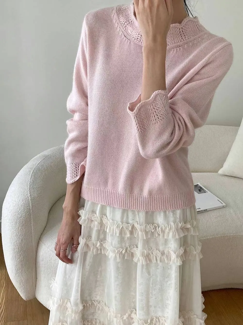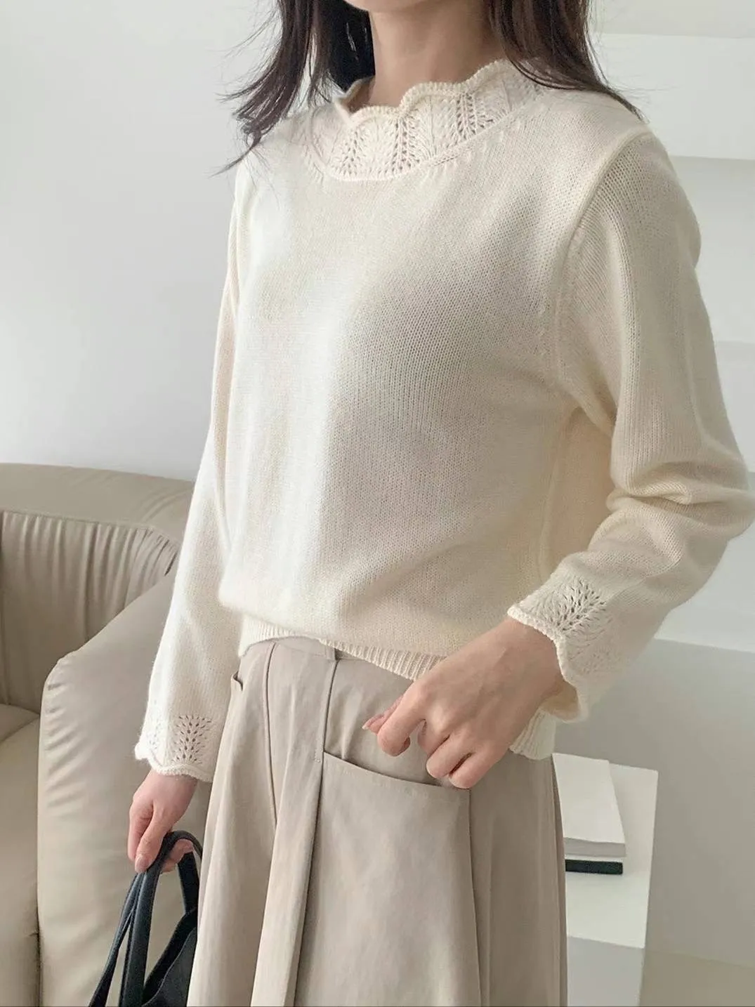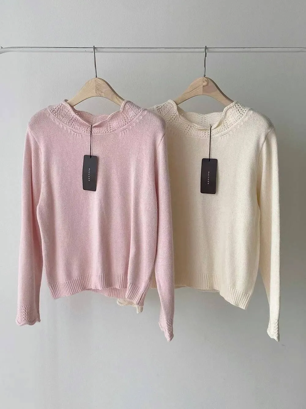 浣熊20%+高級羊毛50% 領口袖口簍空針織 有暖度