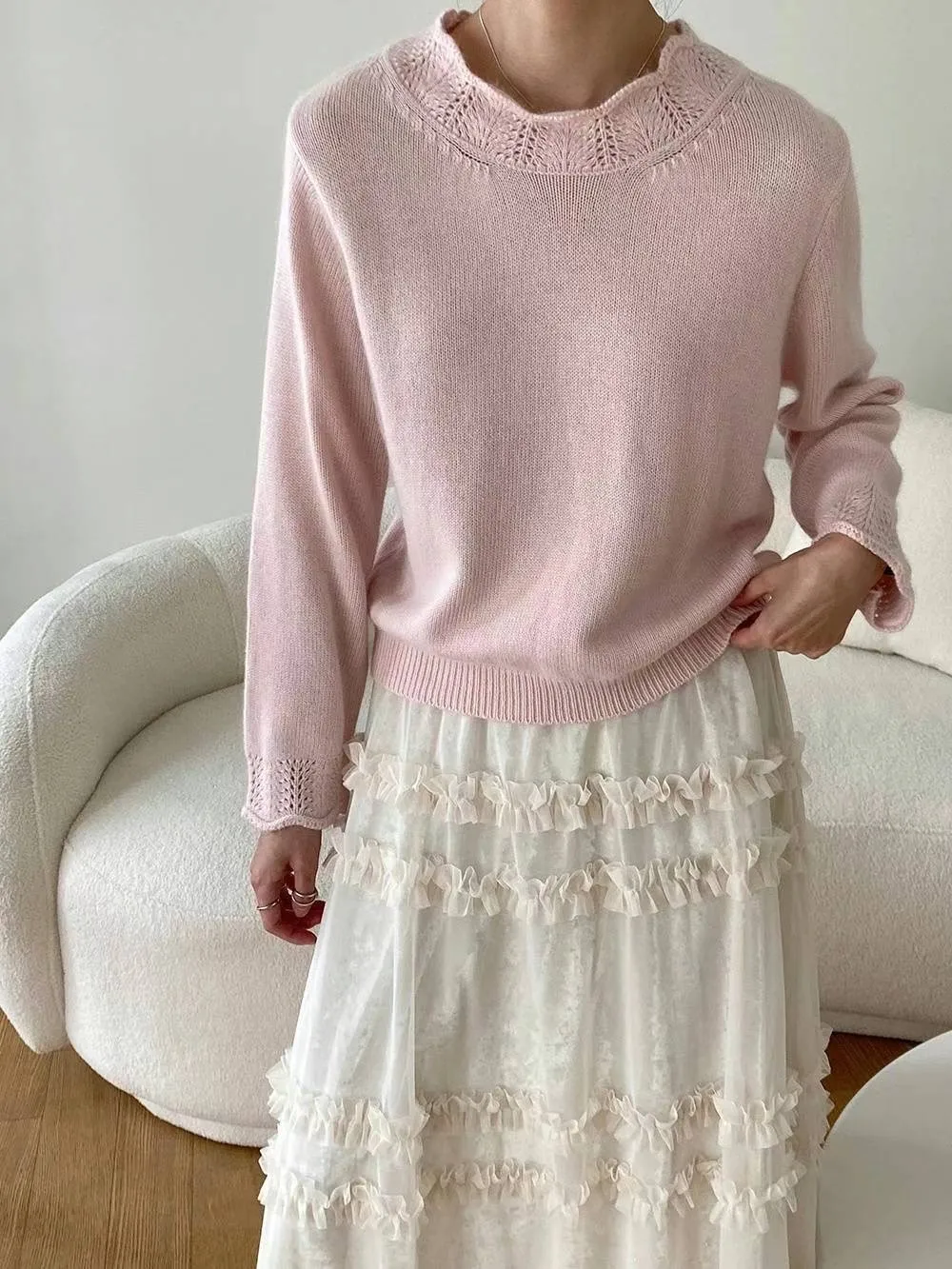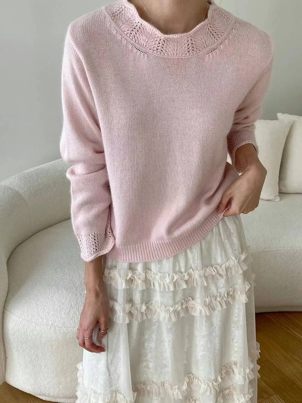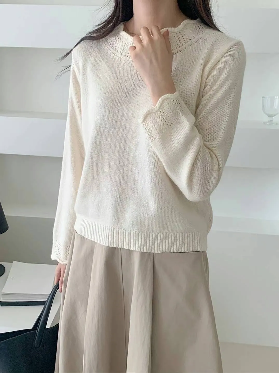 浣熊20%+高級羊毛50% 領口袖口簍空針織 有暖度