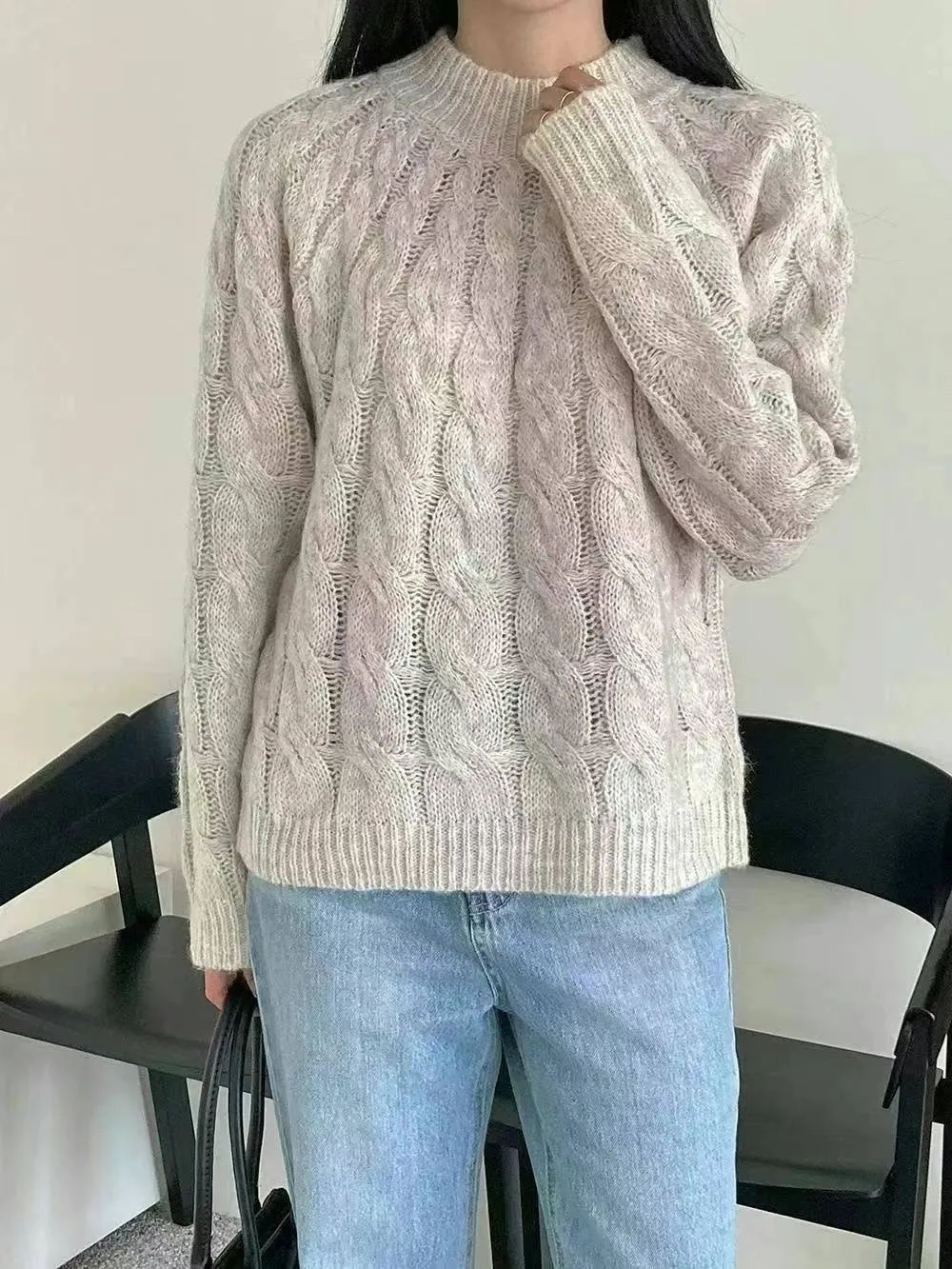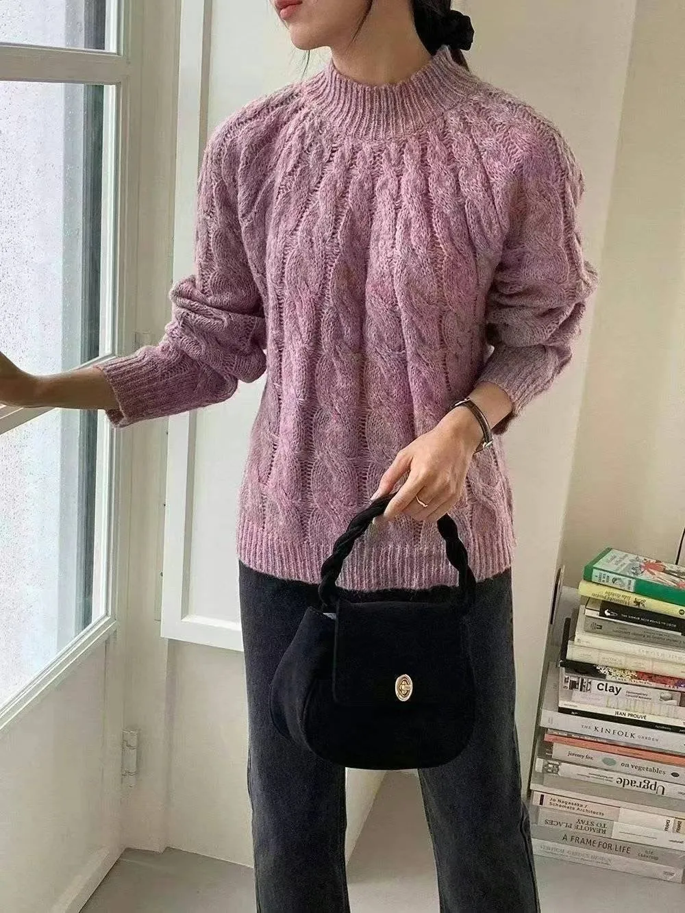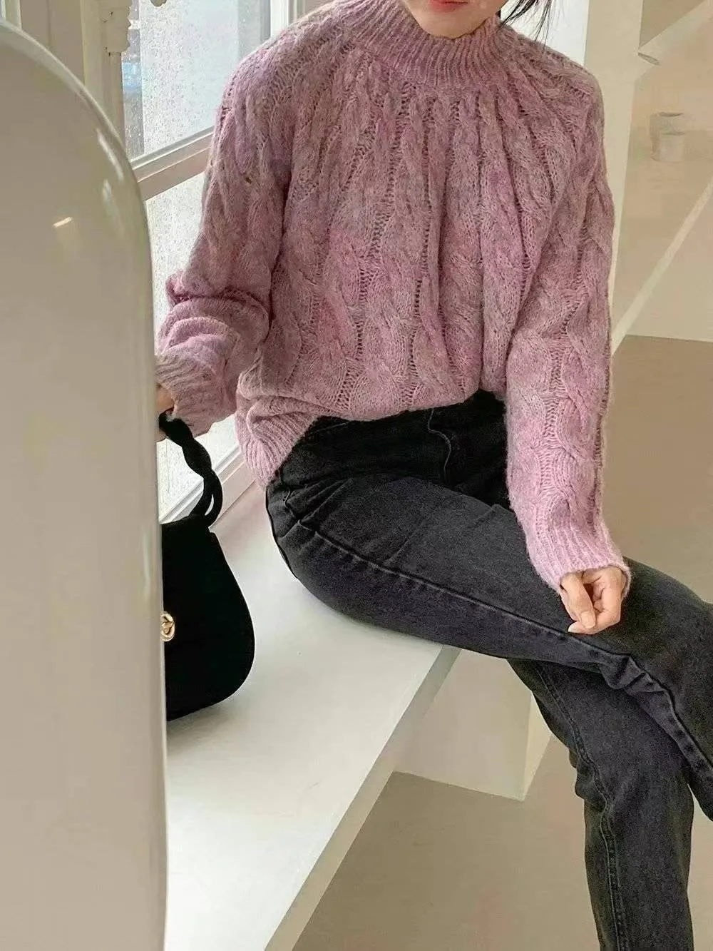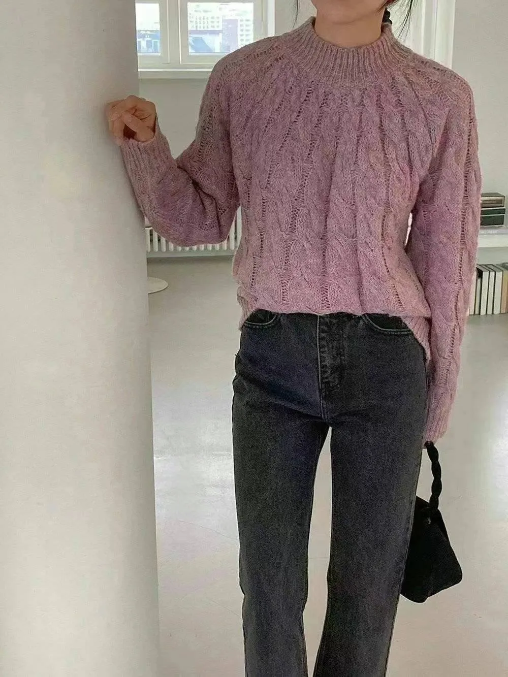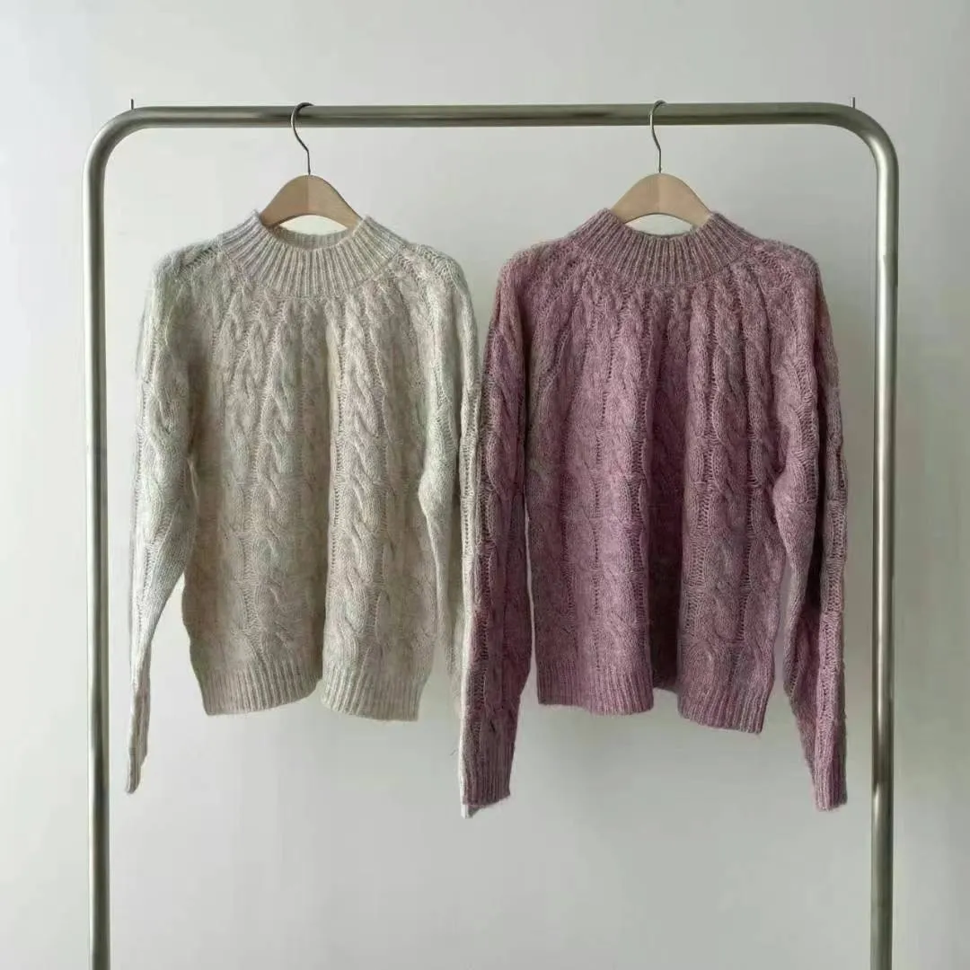 BY262特價渲染麻花針織衫 米 紫 特價$520