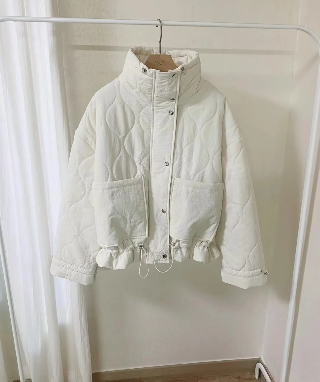 尼龍+鋪棉 下擺抽繩 小立領 有口袋 壓釦穿脫