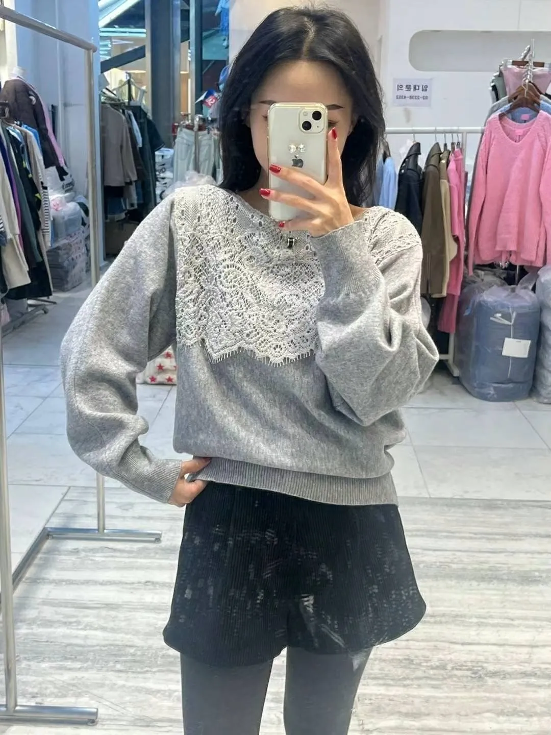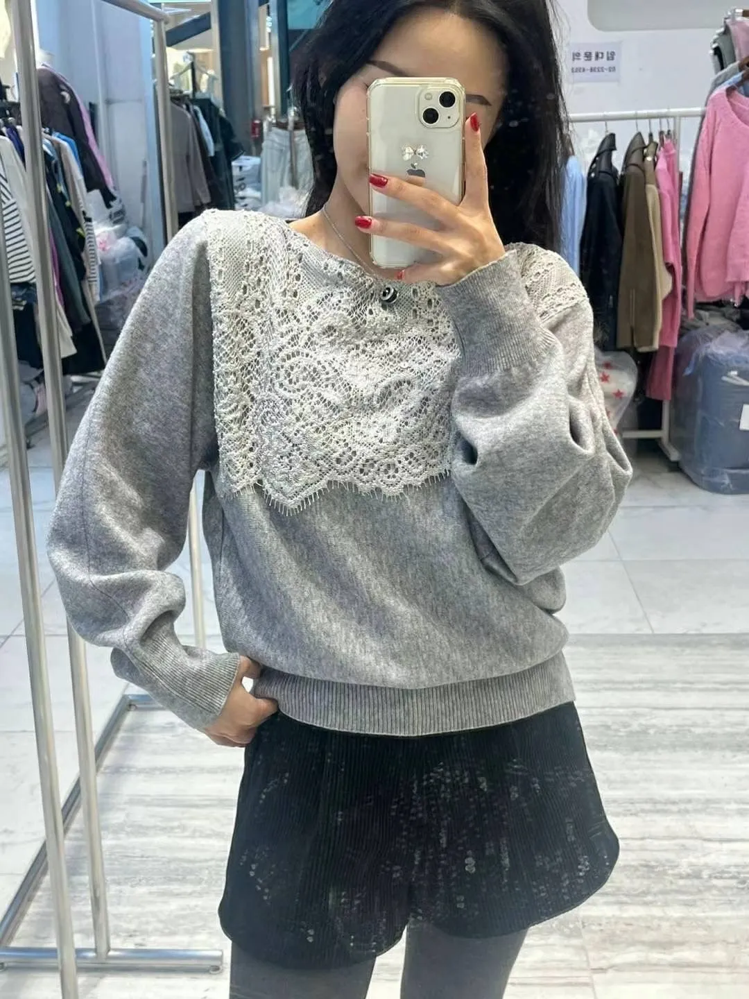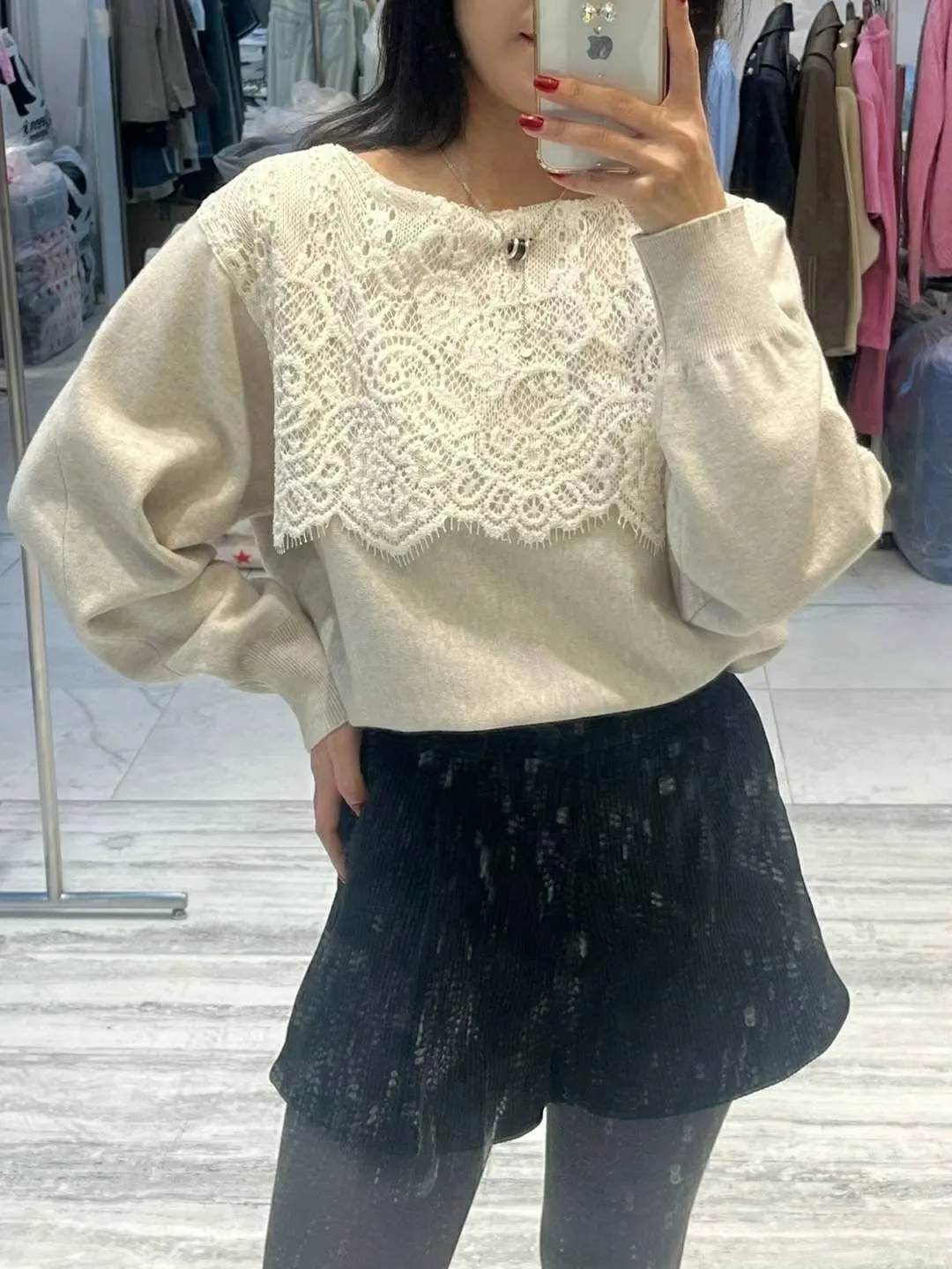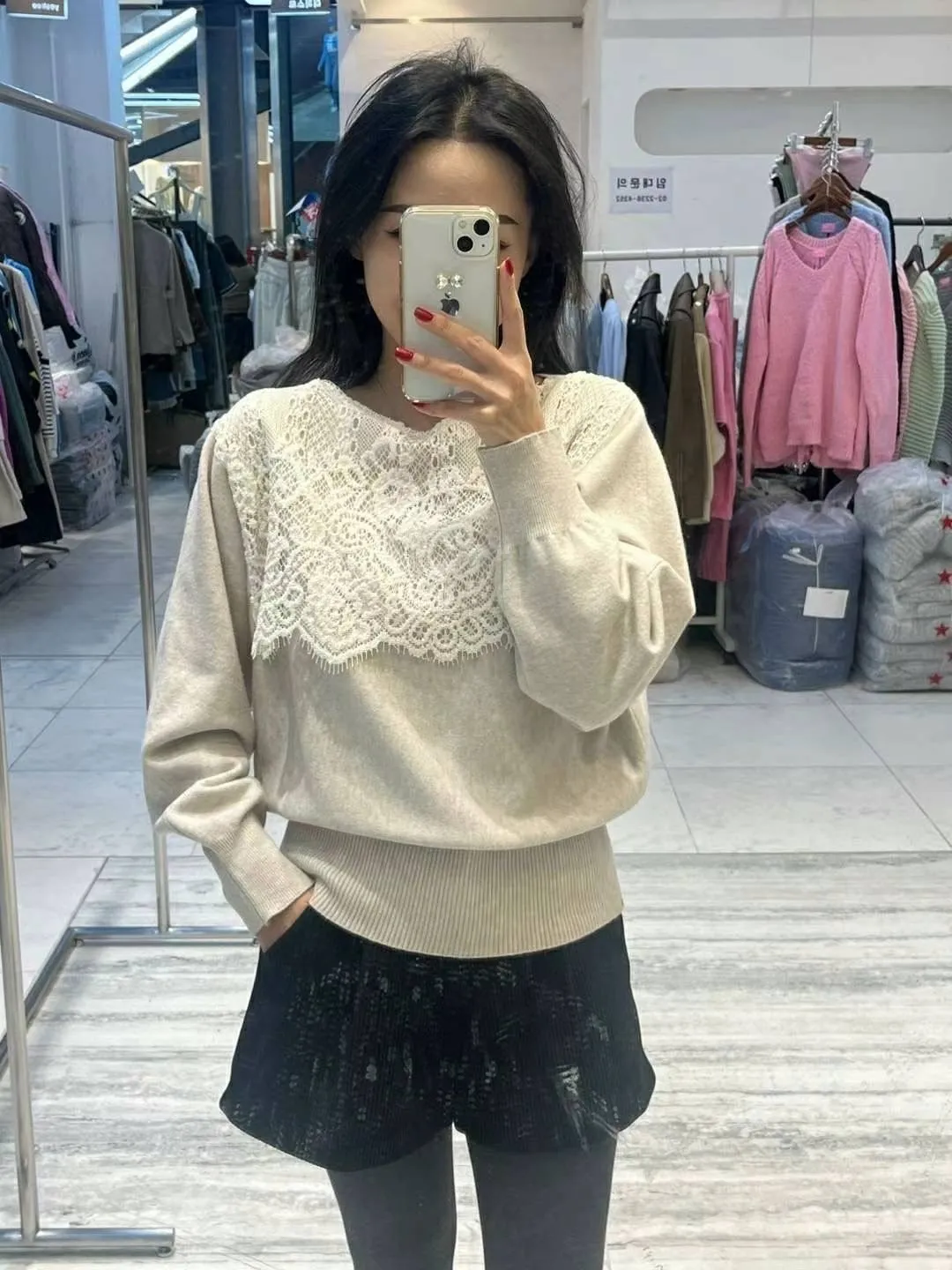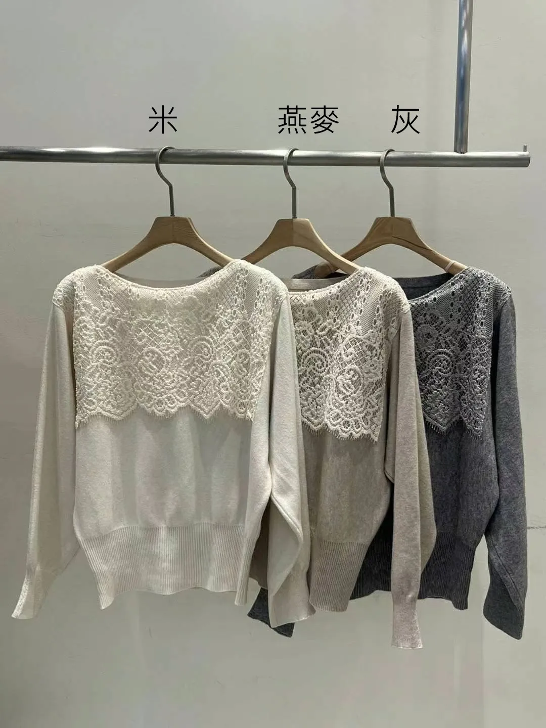 BY437溫柔蕾絲針織上衣 米 燕麥 灰 官網價$890 線上價$860