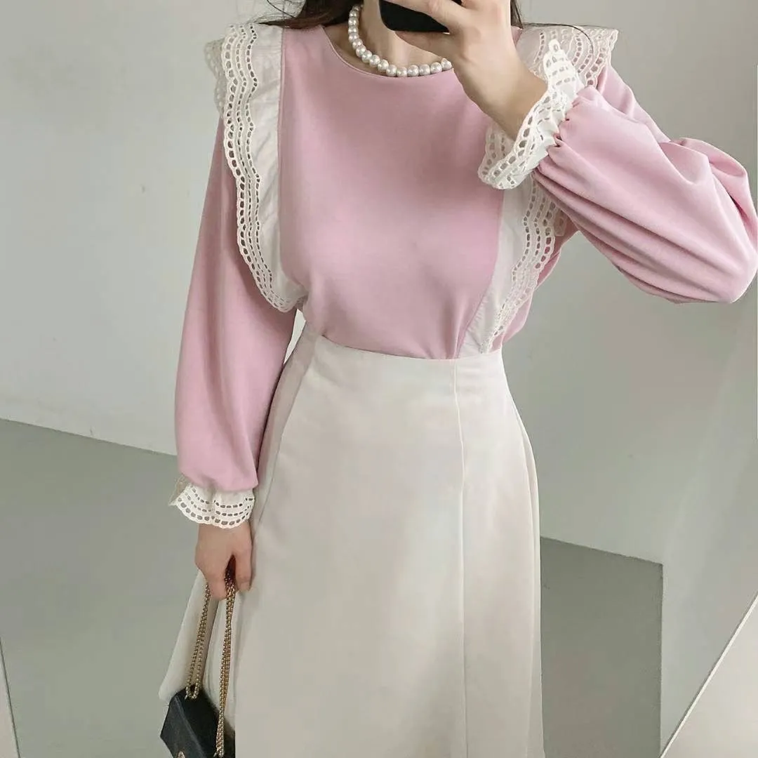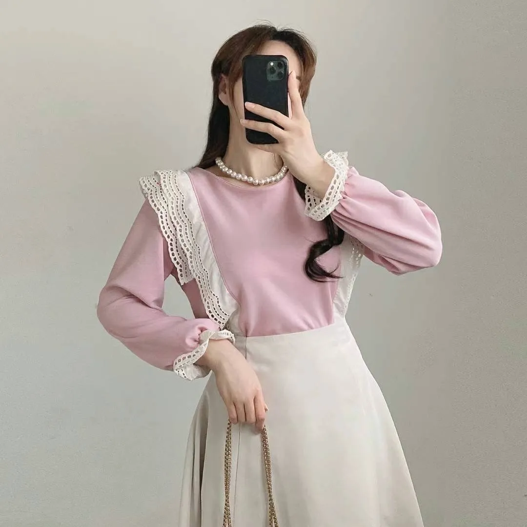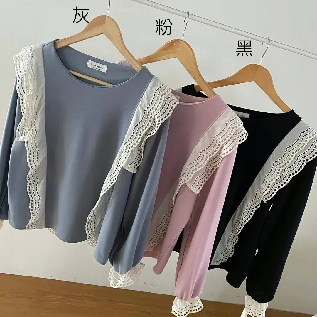 BY445美肩延伸雙層蕾絲上衣 粉 灰 黑 官網價$810 線上價$780