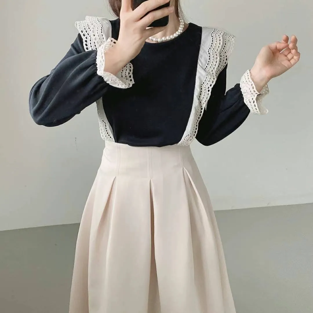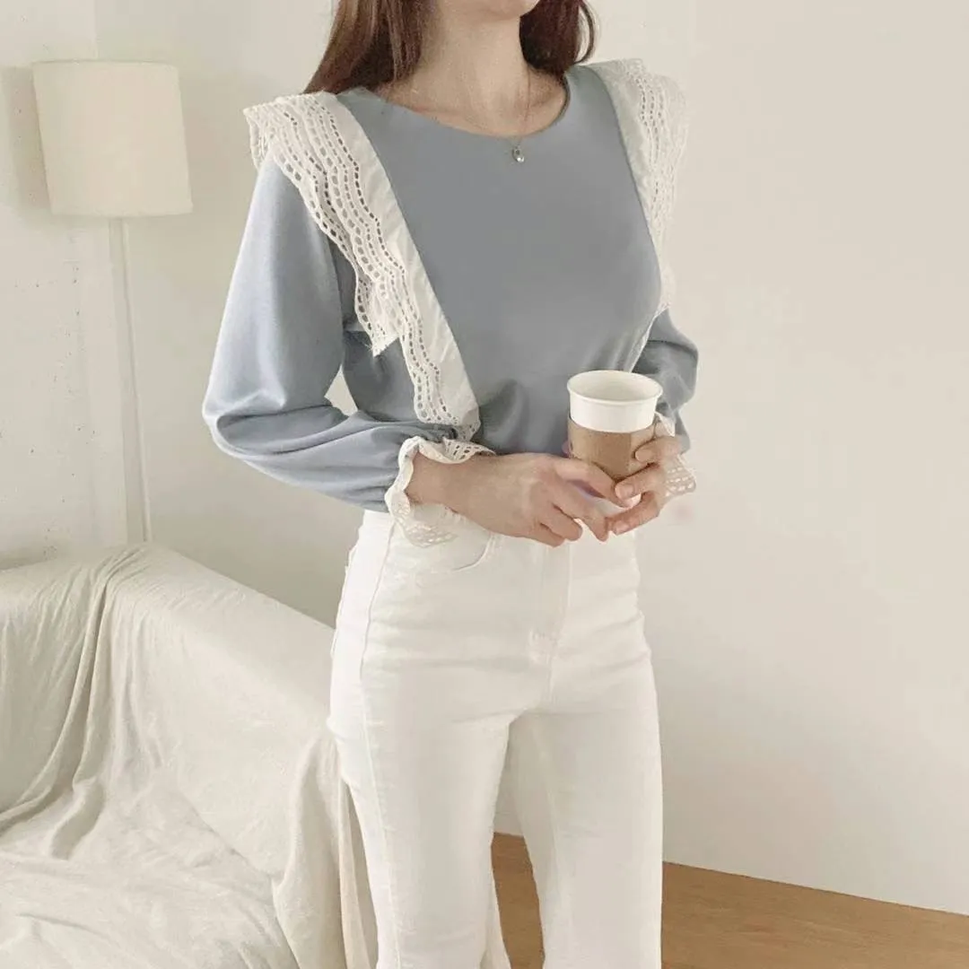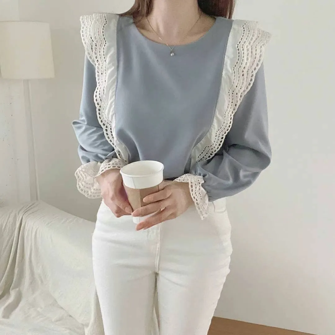 BY445美肩延伸雙層蕾絲上衣 粉 灰 黑 官網價$810 線上價$780