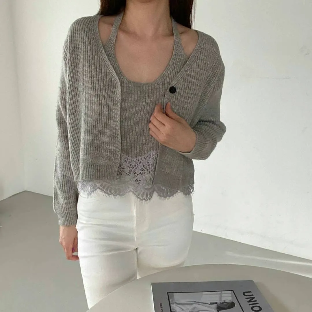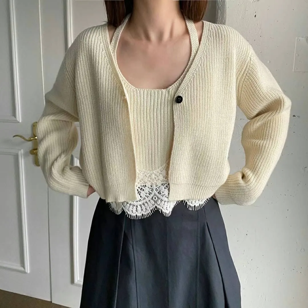 BY452特價羊毛針織套裝(背心+外套) 米 灰 特價$699