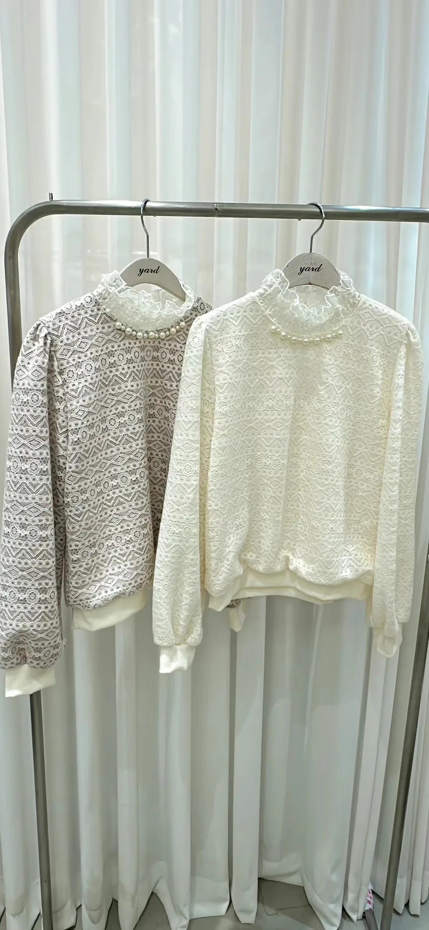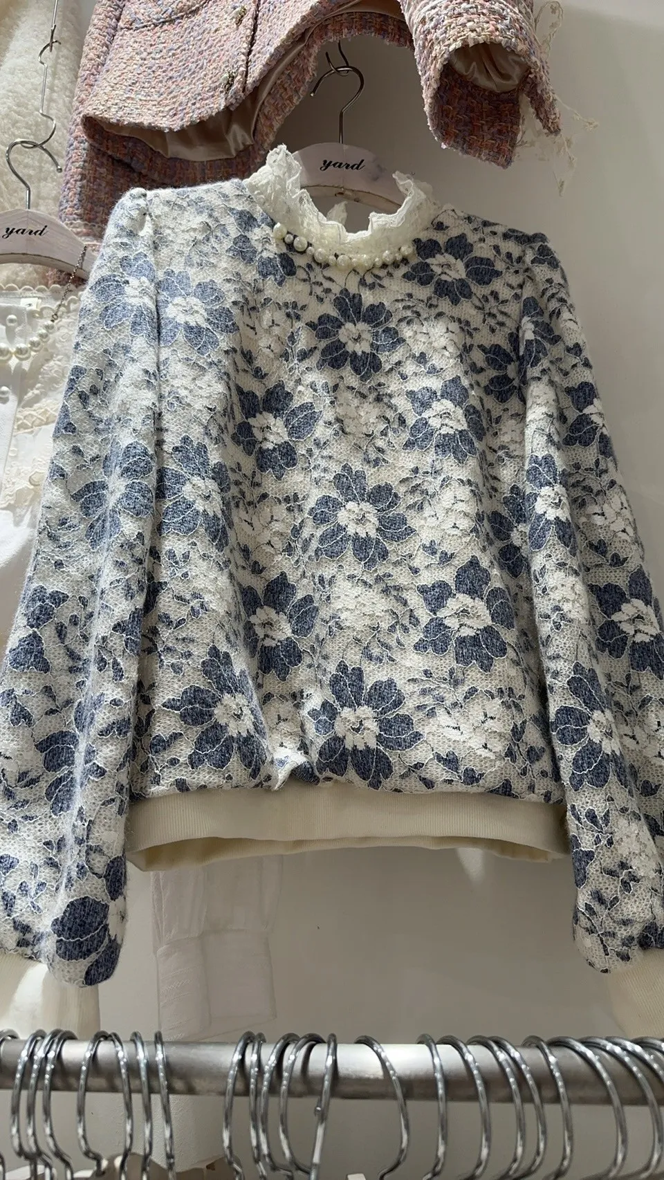 BY553特價羊毛荷葉珍珠領上衣 米 粉 藍 原價$1590 特價$1090
