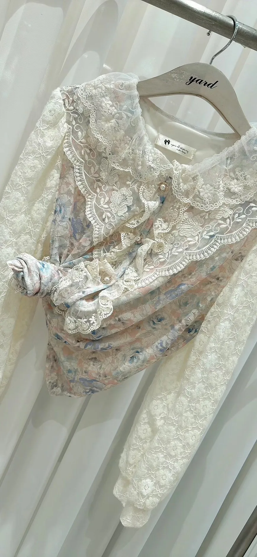 BY556特價淡雅蕾絲綿淡雅彩墨上衣 原價$1590 特價$1090