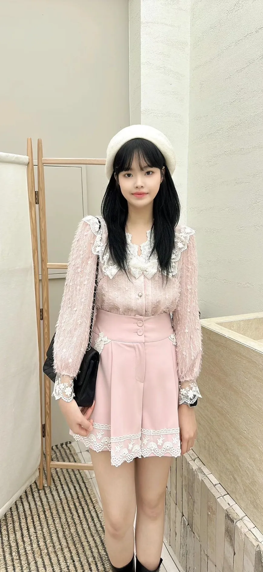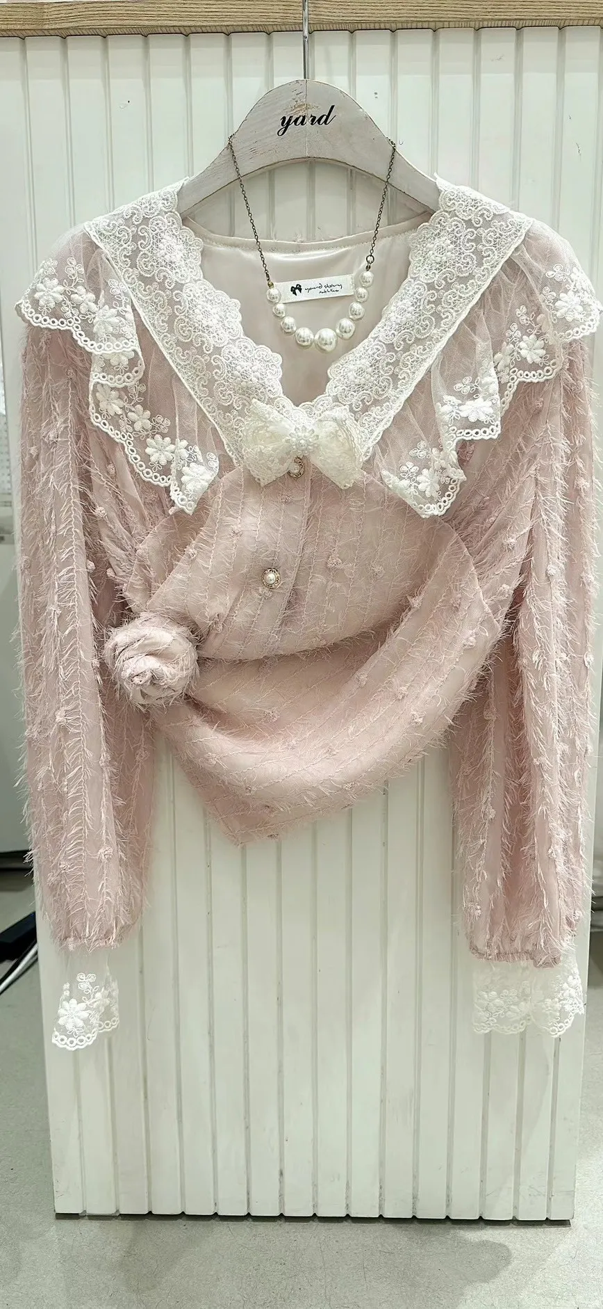 BY562特價氣質粉色蕾絲珍珠釦上衣 原價$1560 特價$1060
