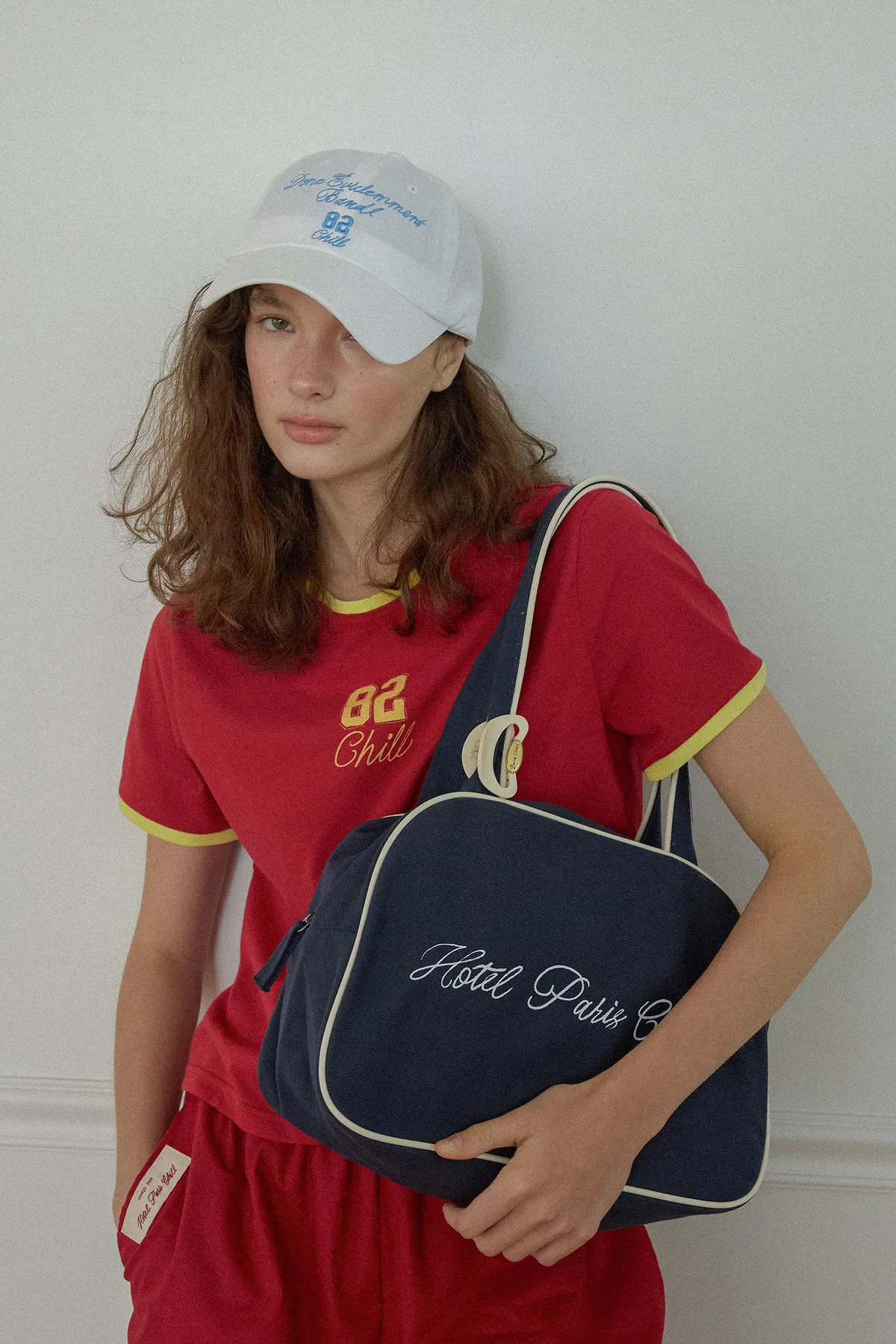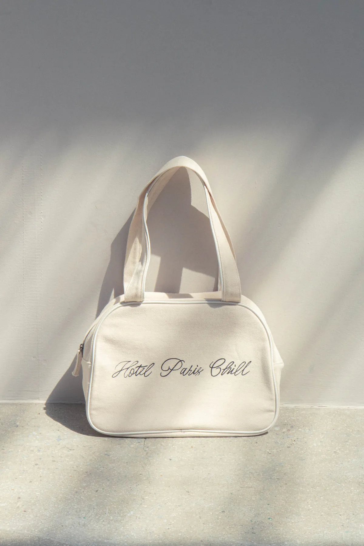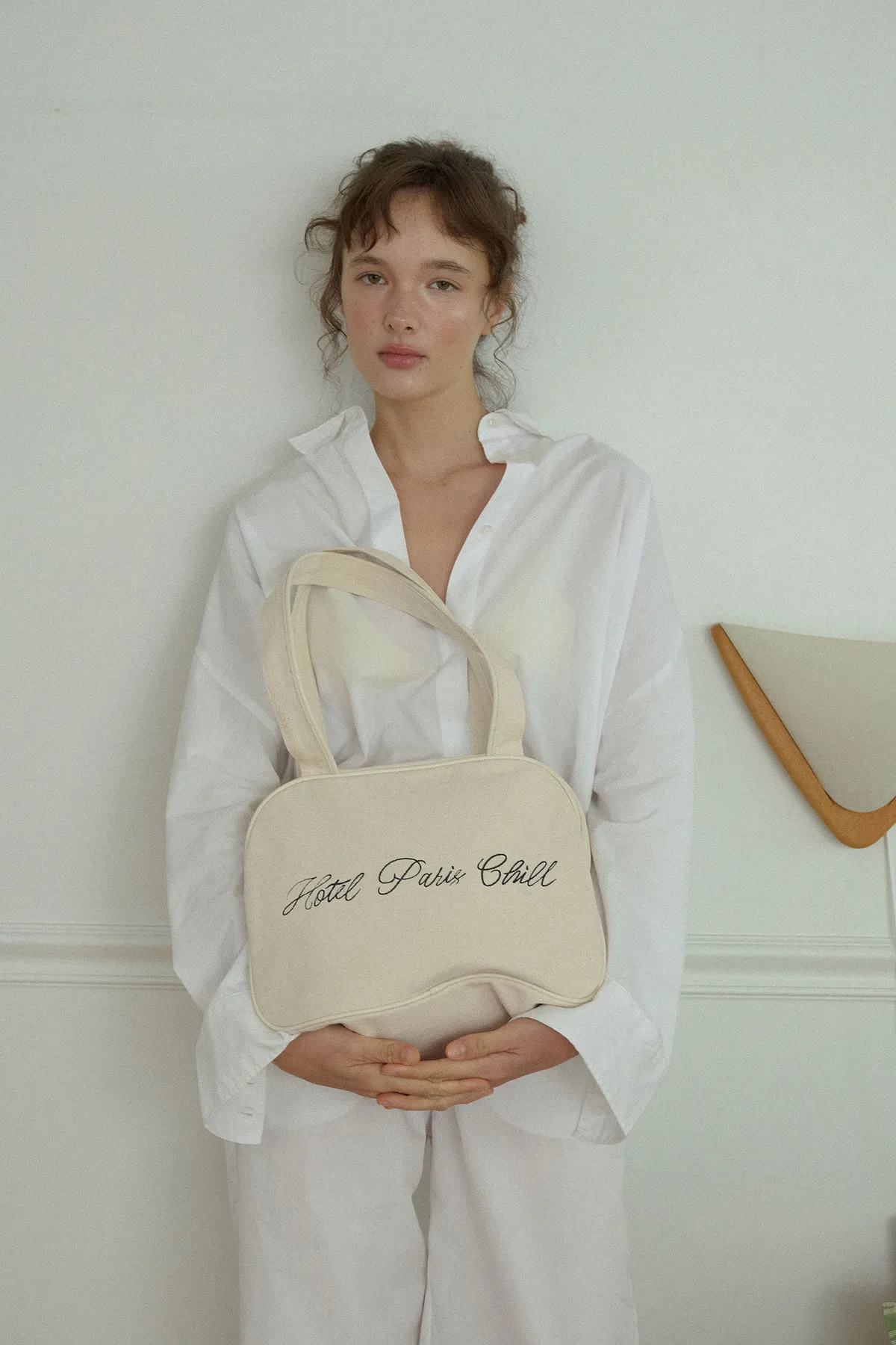 帆布+亞麻 質感很好 草寫法文 拉鍊閉合 33*23*21公分