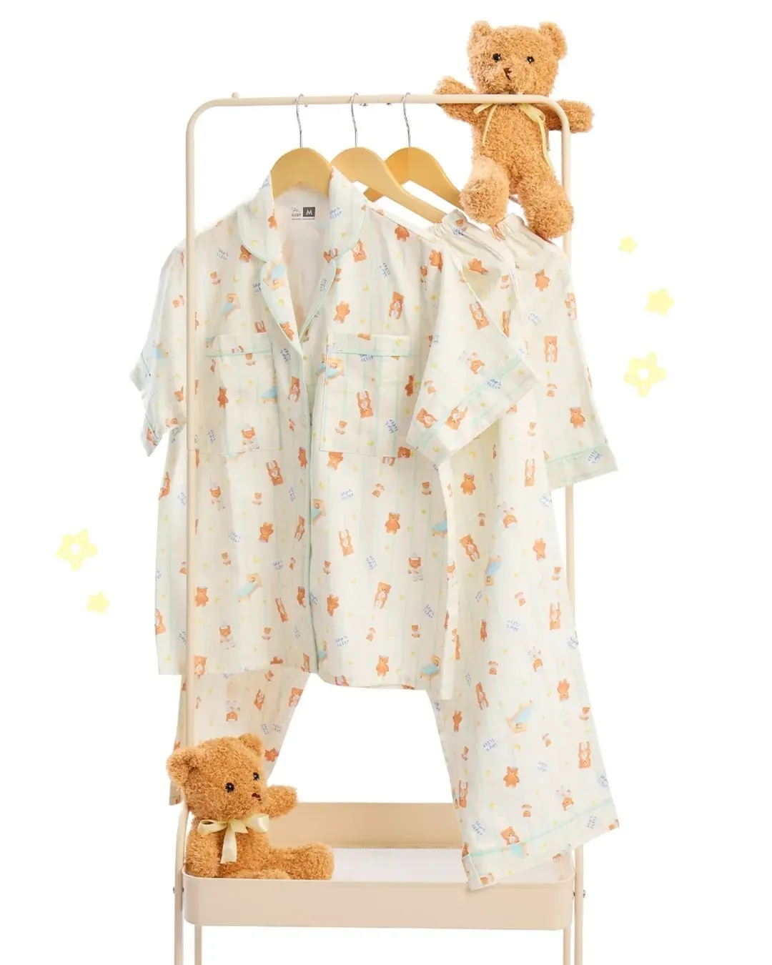 CJ079 藍色格紋熊熊夢遊男女同款睡衣套組(短袖長褲) S M L XL 2XL 線上價$1250 官網價$1280