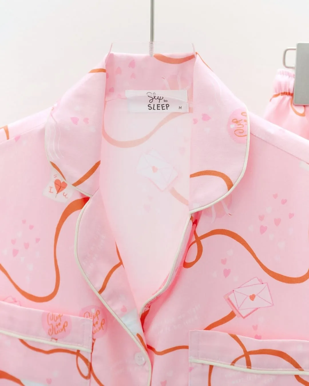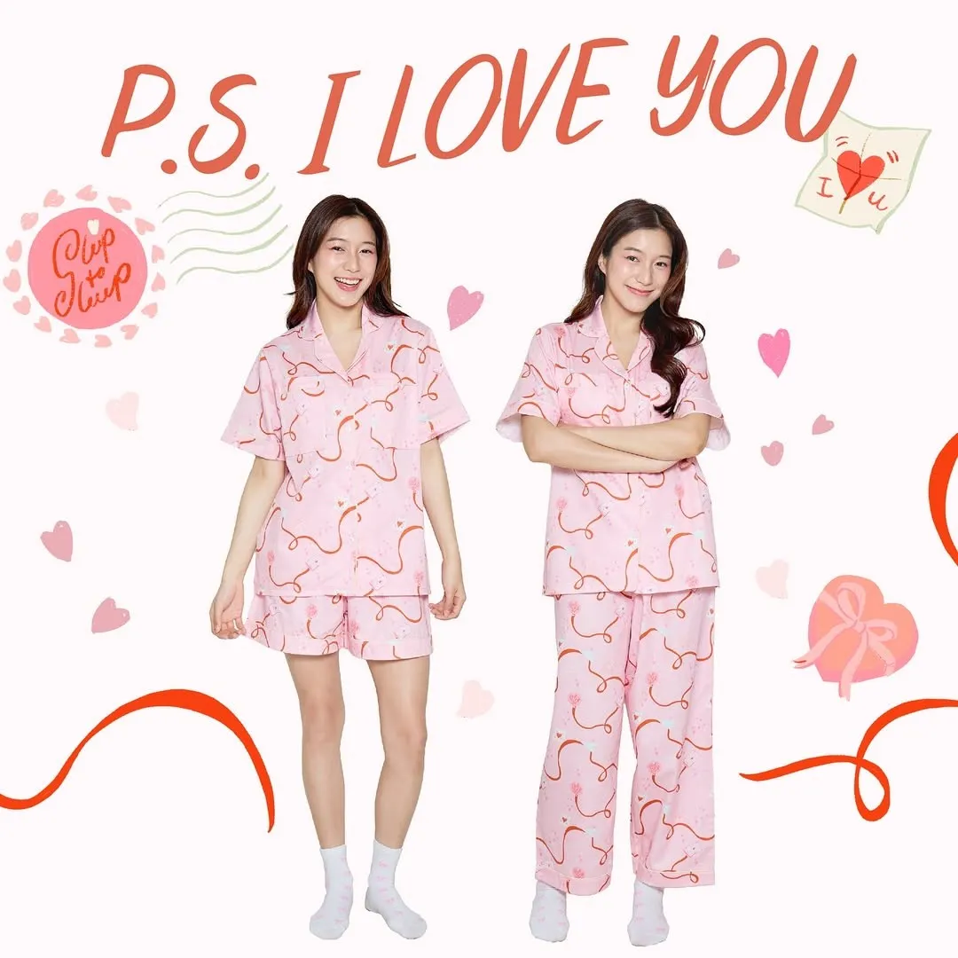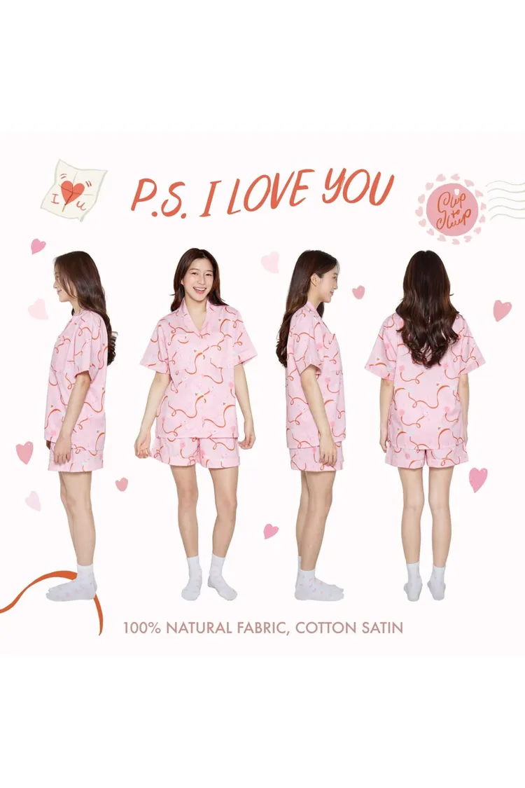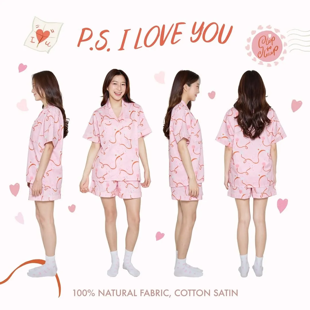 CJ082粉色緞帶情書睡衣套組(短袖短褲) S M L XL 2XL 線上價$1180 官網價$1220