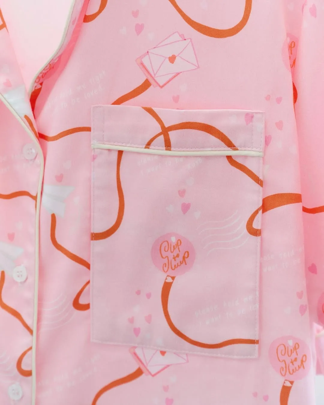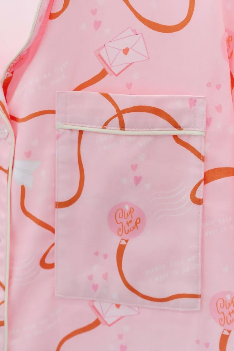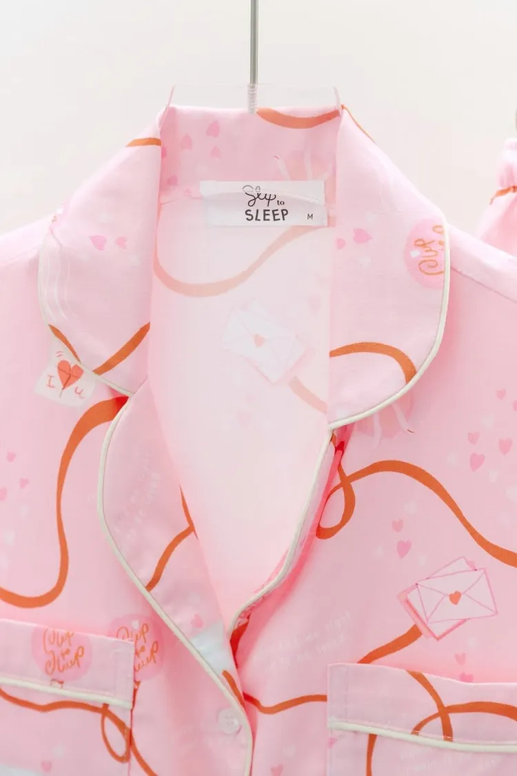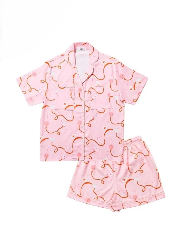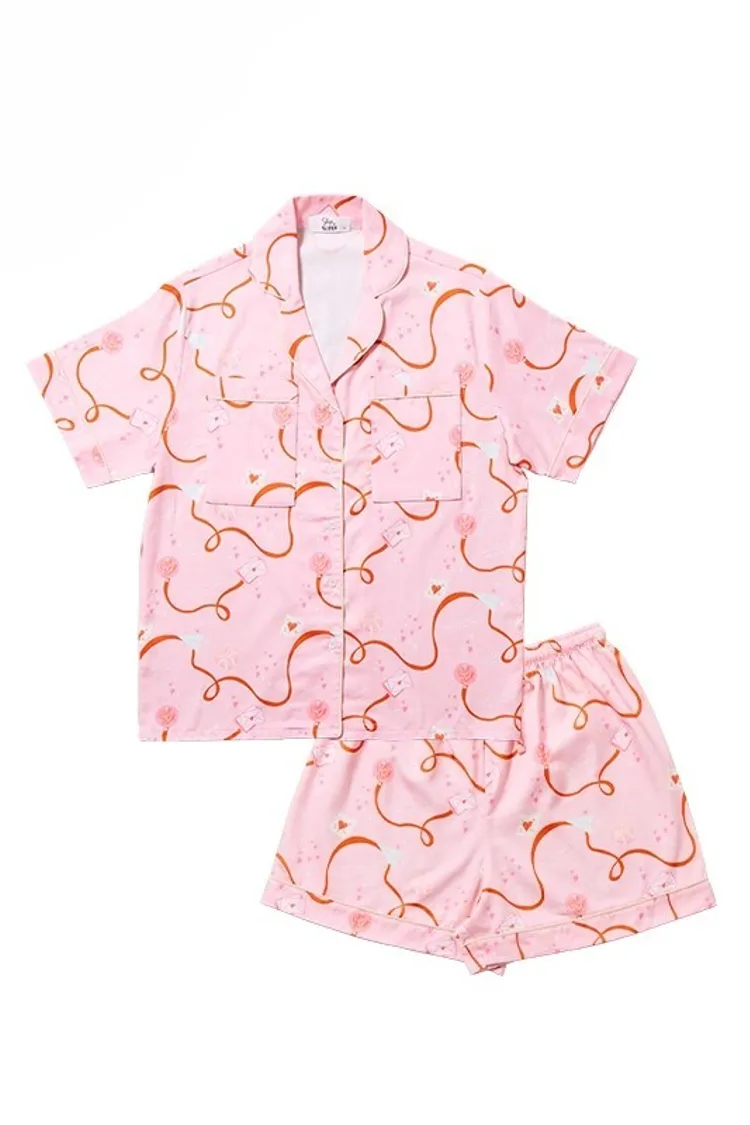 CJ082粉色緞帶情書睡衣套組(短袖短褲)