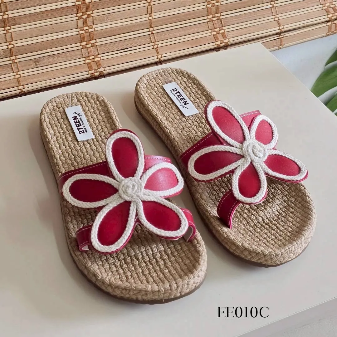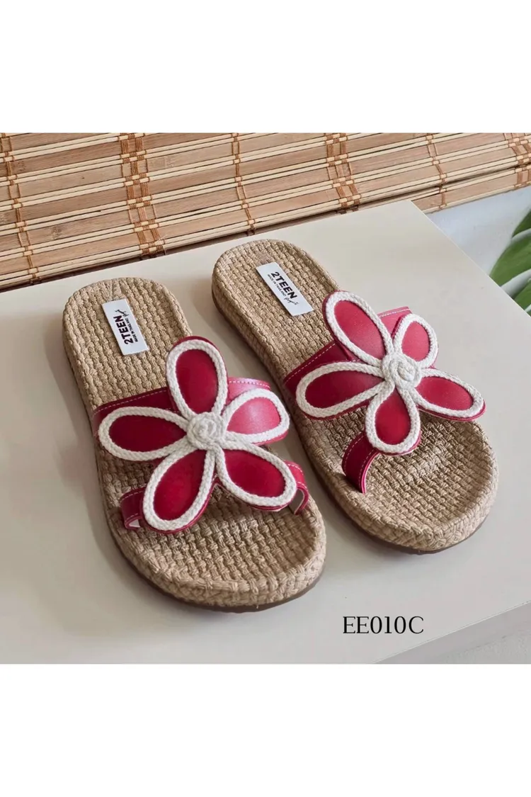 CJ181 泰國手工編織皮革花朵拖鞋(EE010)