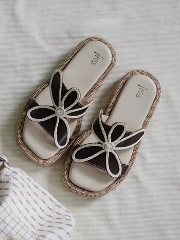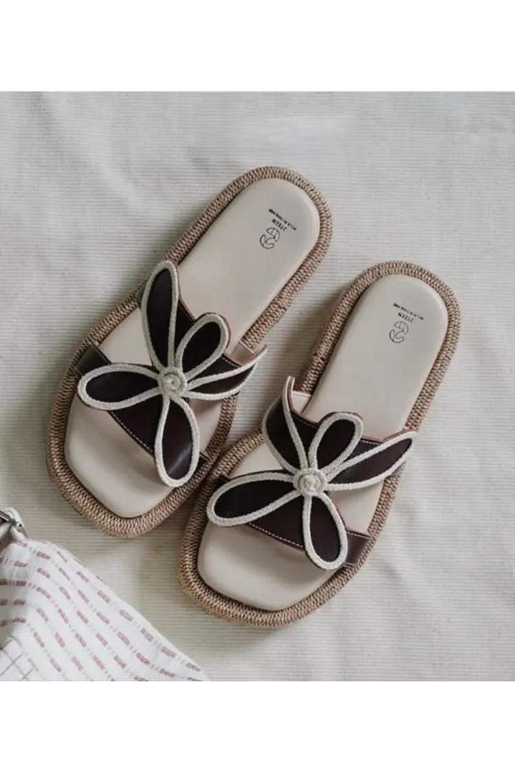 CJ184 泰國手工編織皮革花朵厚底拖鞋(Route007)