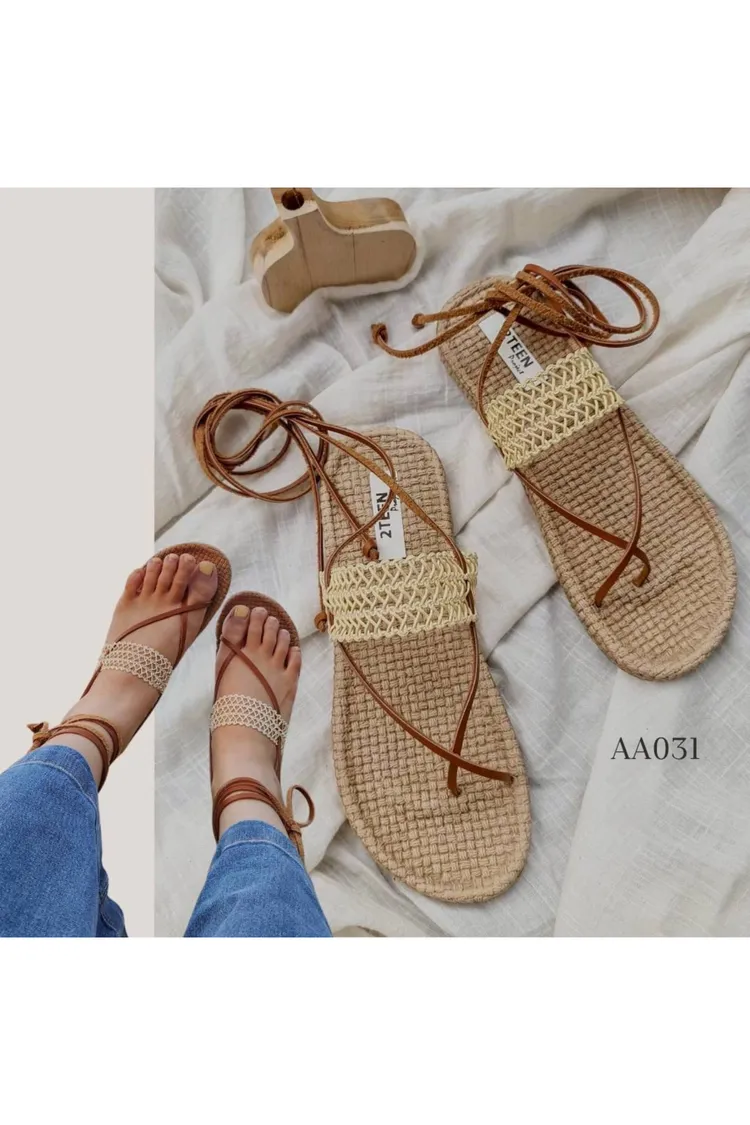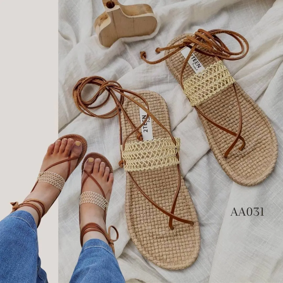 CJ191 泰國手希臘交叉編織綁帶涼鞋(AA031)