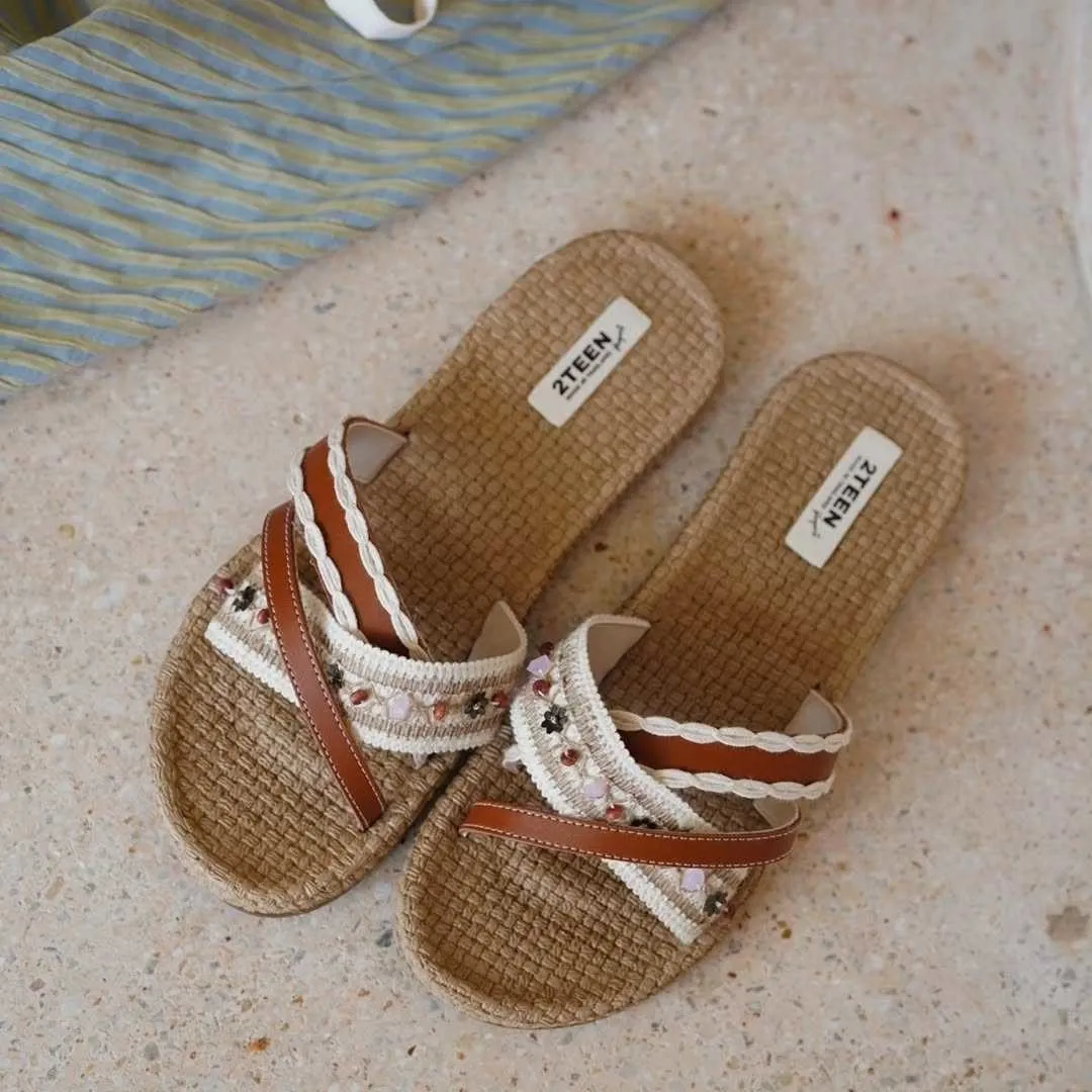 購買 2TEEN 手工花朵編織鞋,
