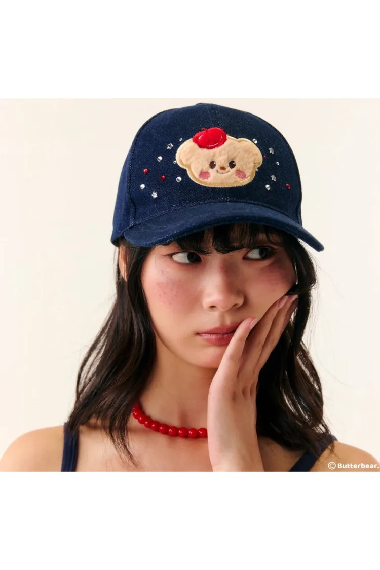 CJ322 深藍刺繡奶油小熊棒球帽