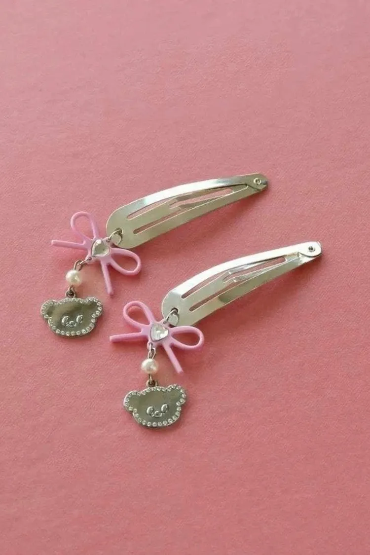 CJ324 蝴蝶結鏡面奶油小熊髮夾(2個一組)