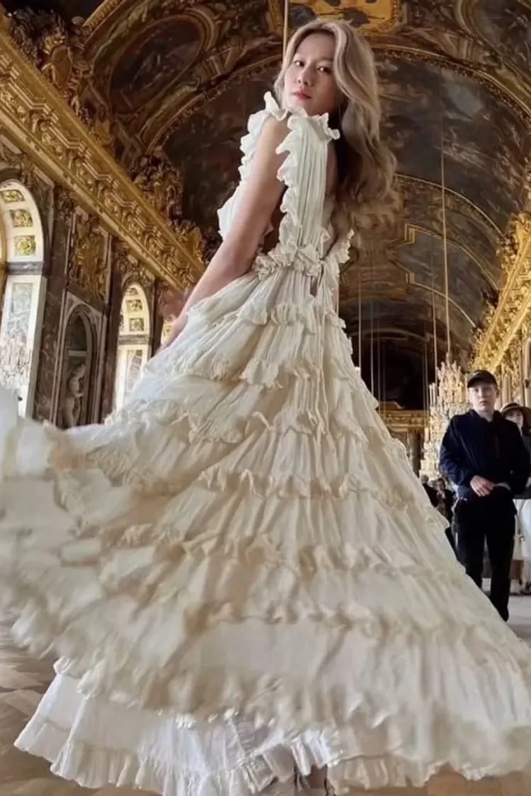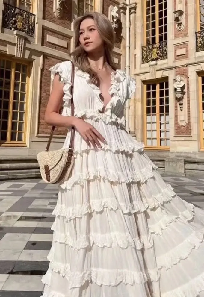 舒服亞麻材質 前V綁帶 多層次裙擺 訂製20件起