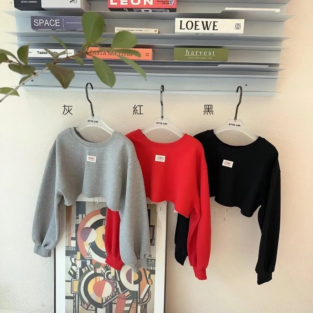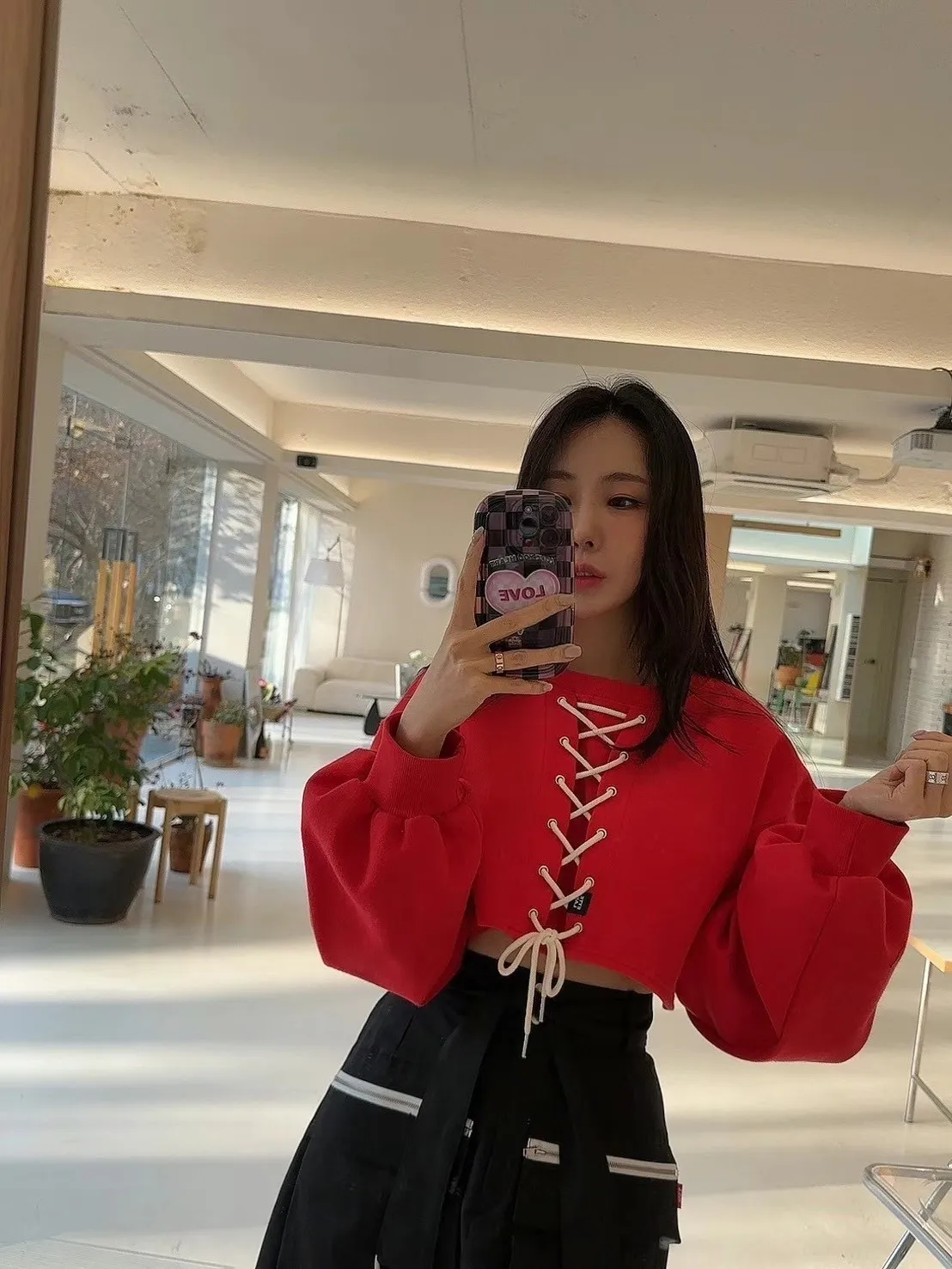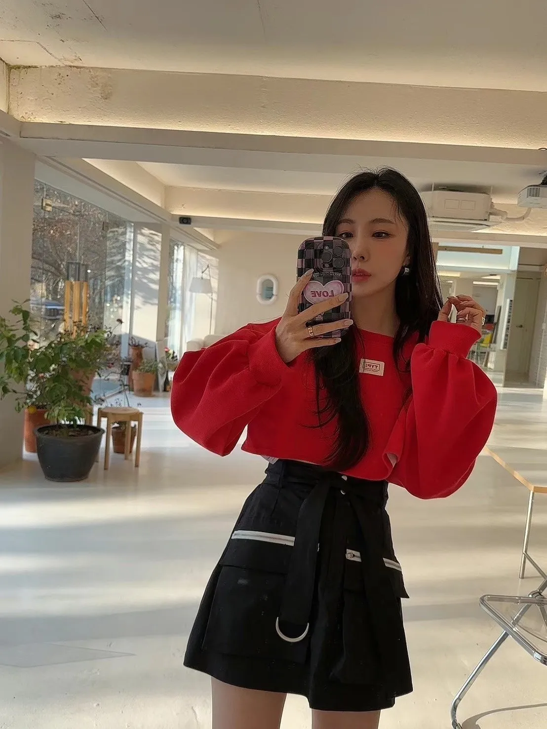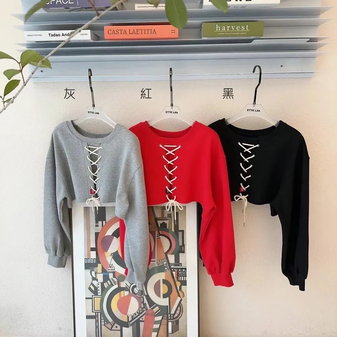 CM017綁帶落肩兩面穿短版大學T 灰 紅 黑 官網價$890 線上價$860