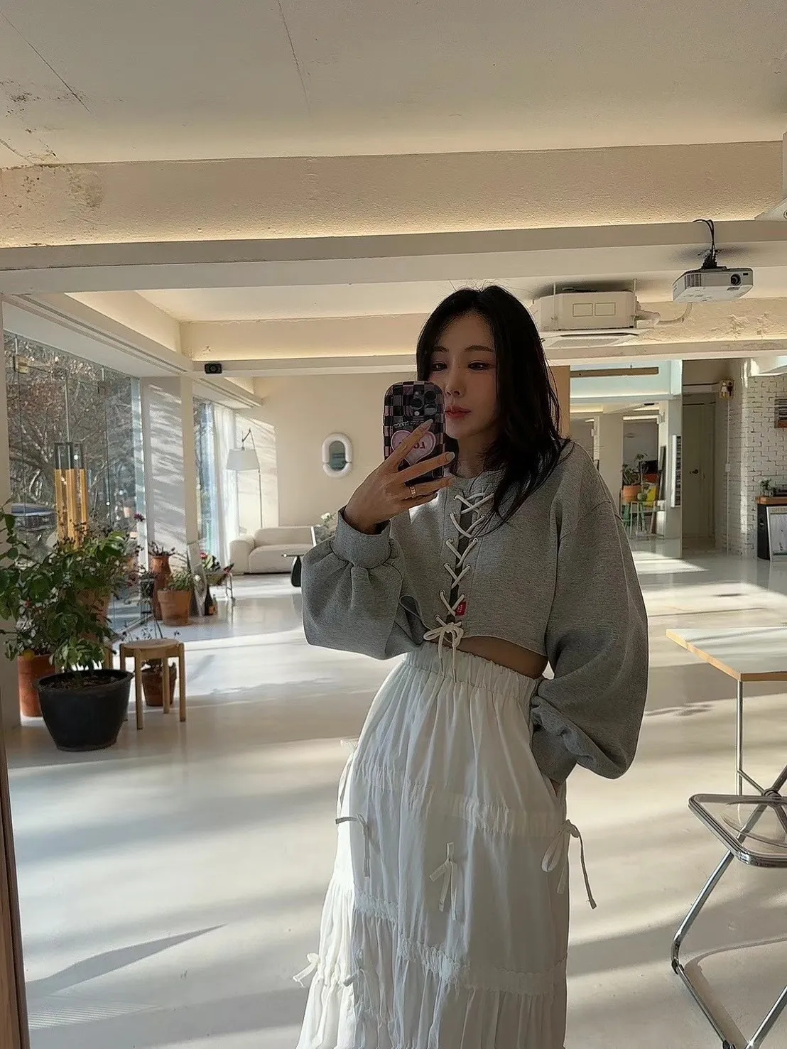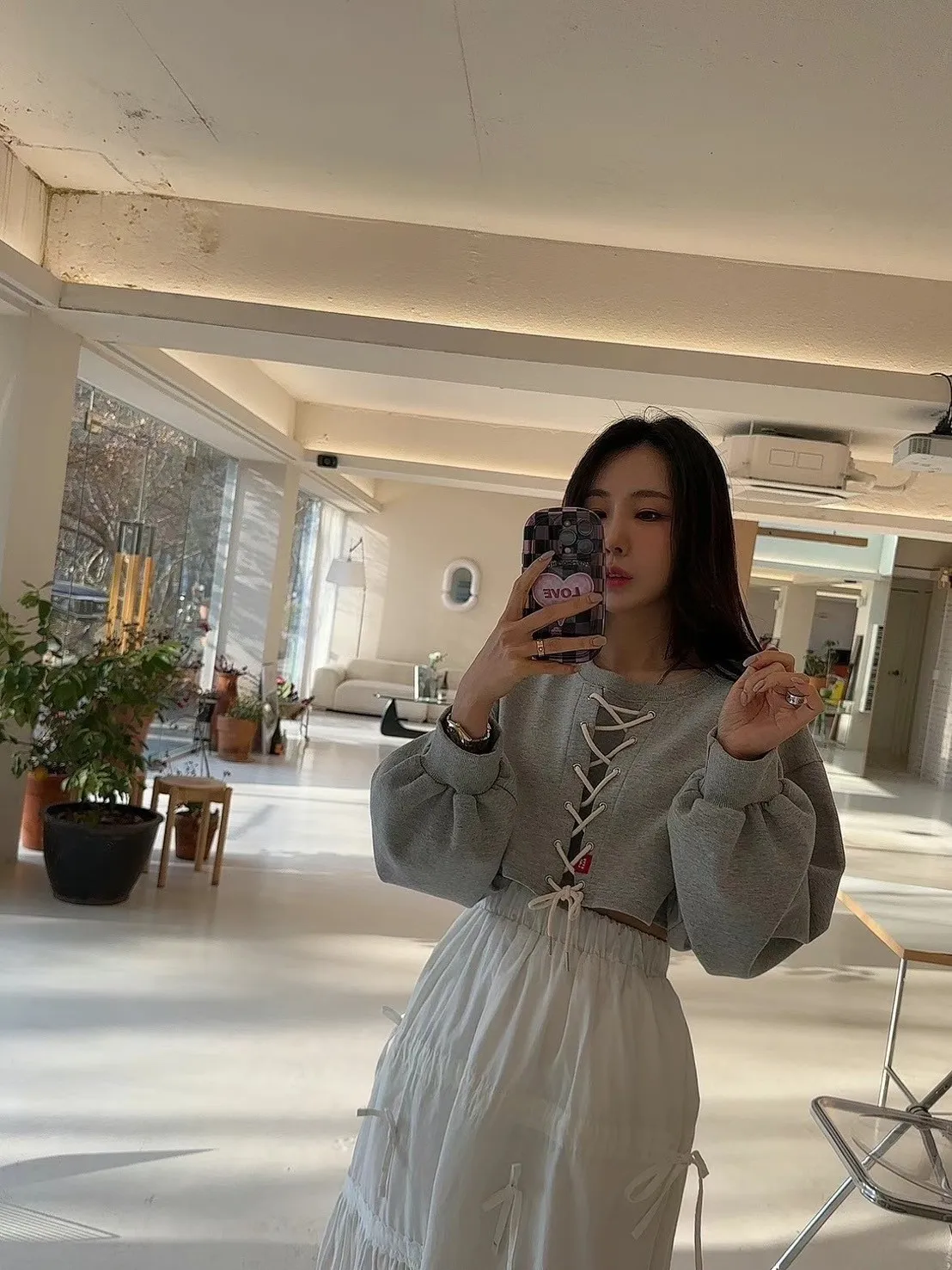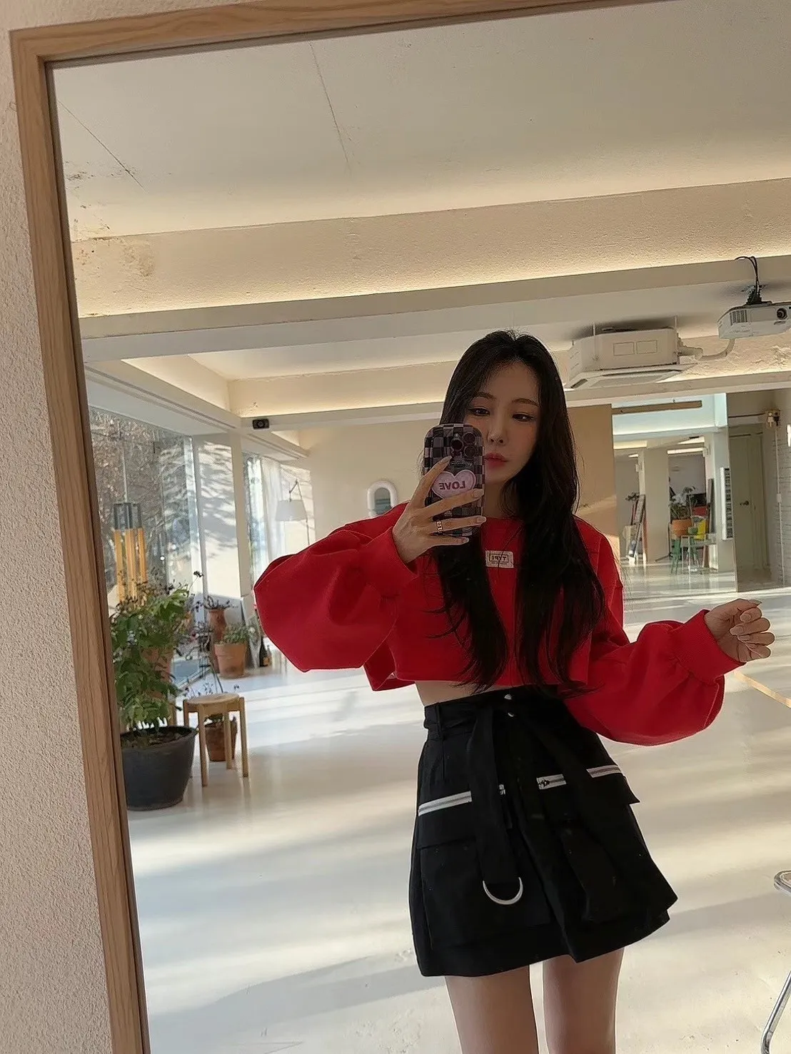 CM017綁帶落肩兩面穿短版大學T 灰 紅 黑 官網價$890 線上價$860
