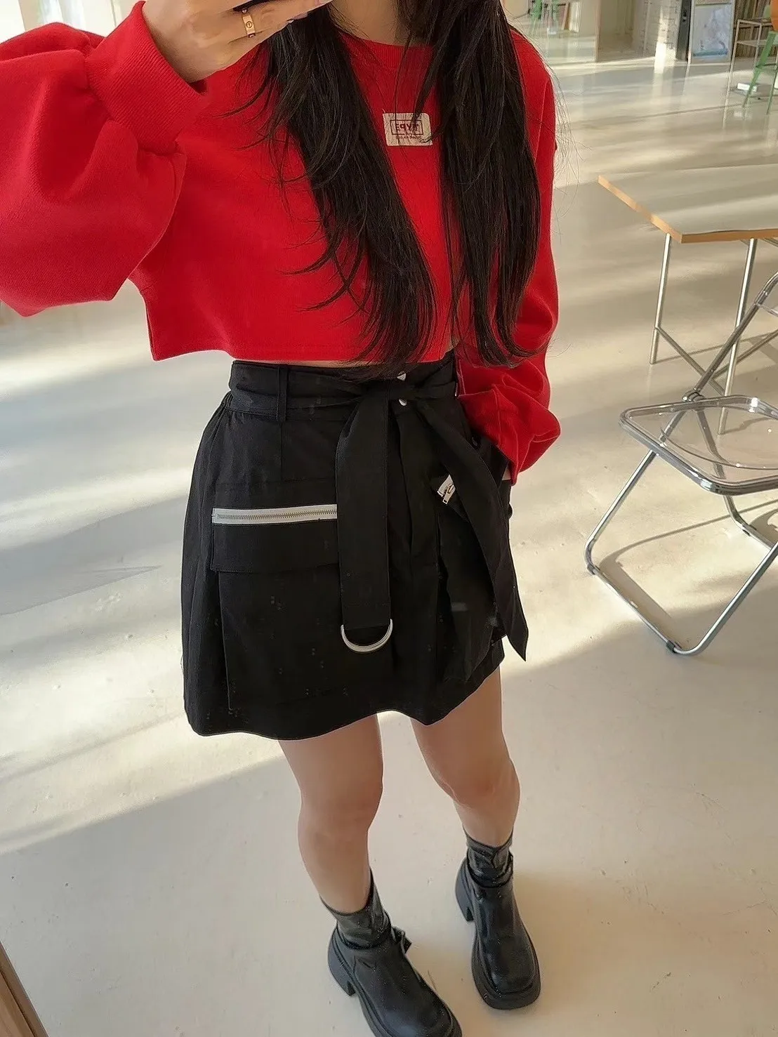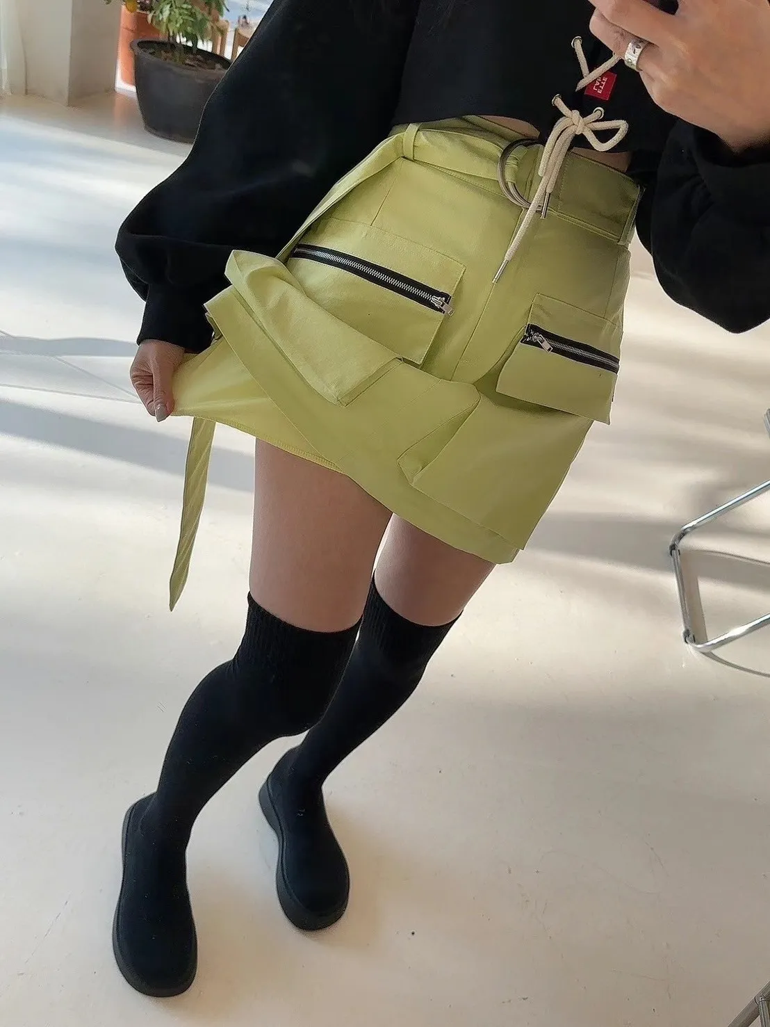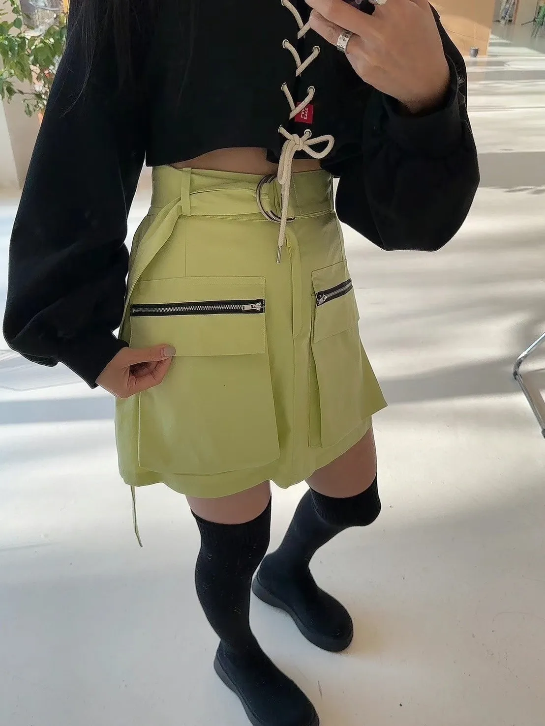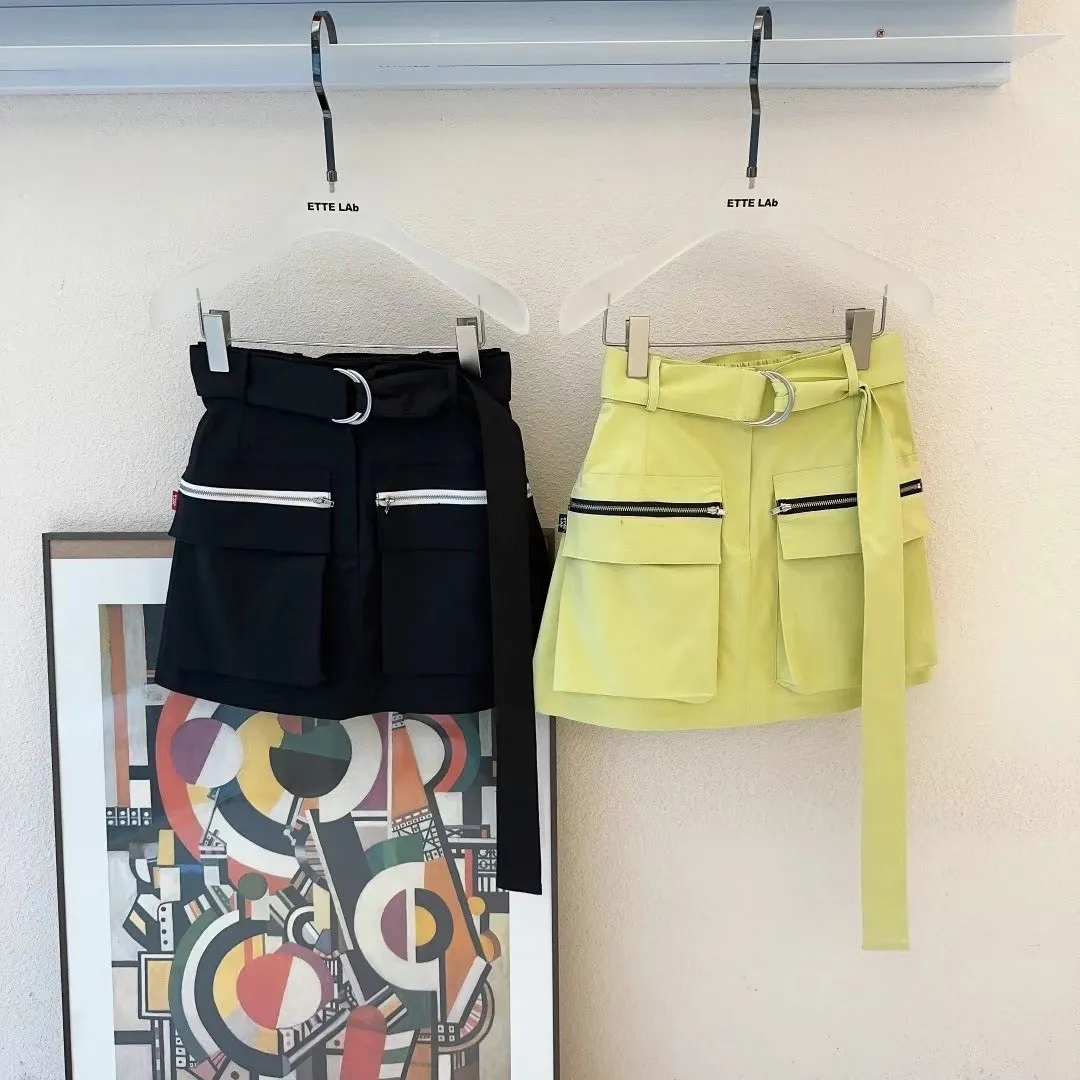 CM018雙口袋工裝褲裙(附綁帶) 黑 黃 官網價$1320 線上價$1290