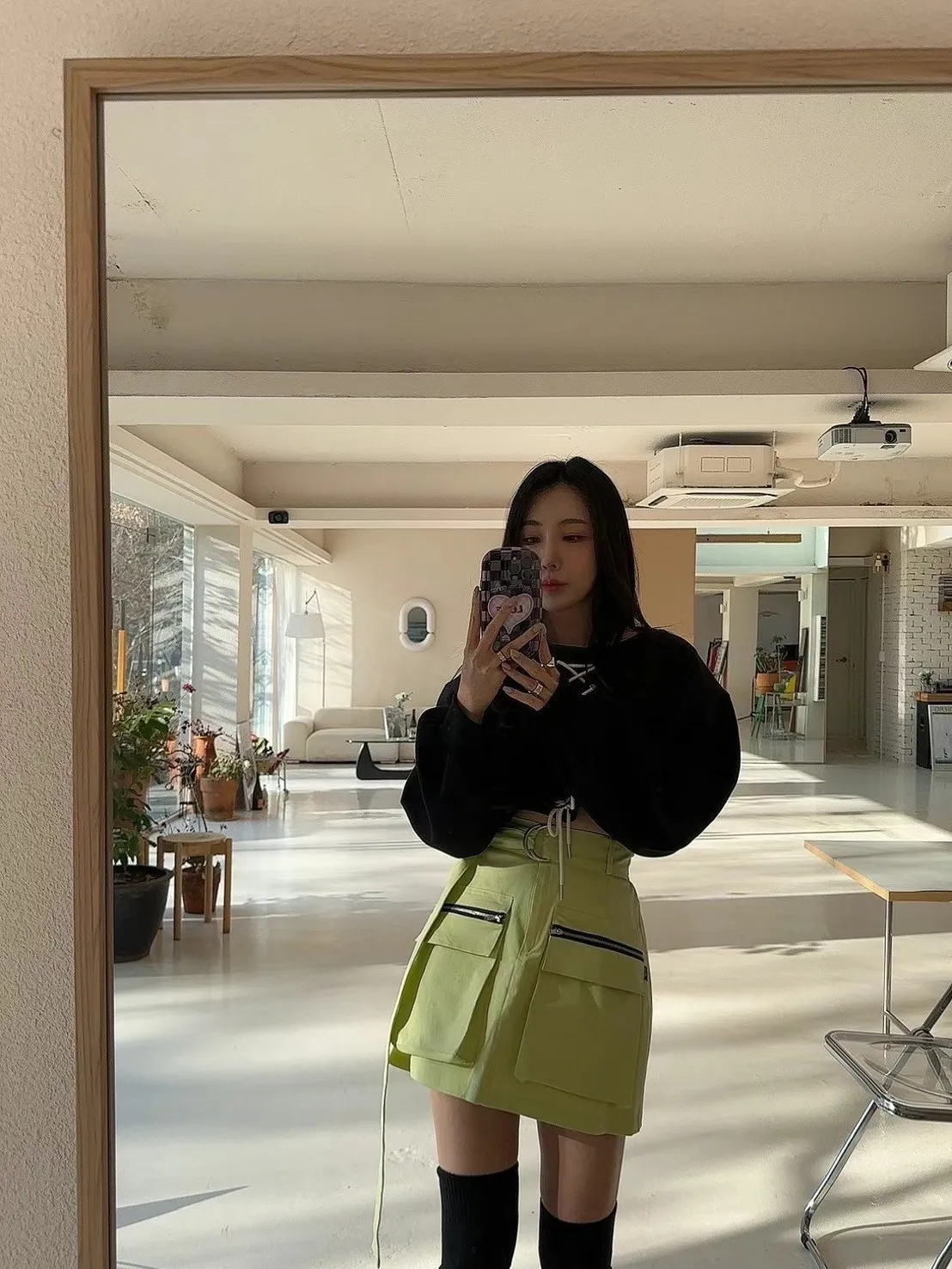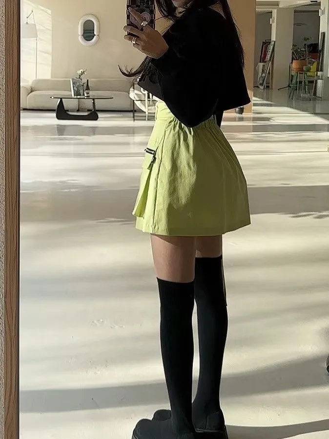 後腰鬆緊 有口袋 是褲裙唷 釦練穿脫 四季皆宜 黃色實體有點偏綠
