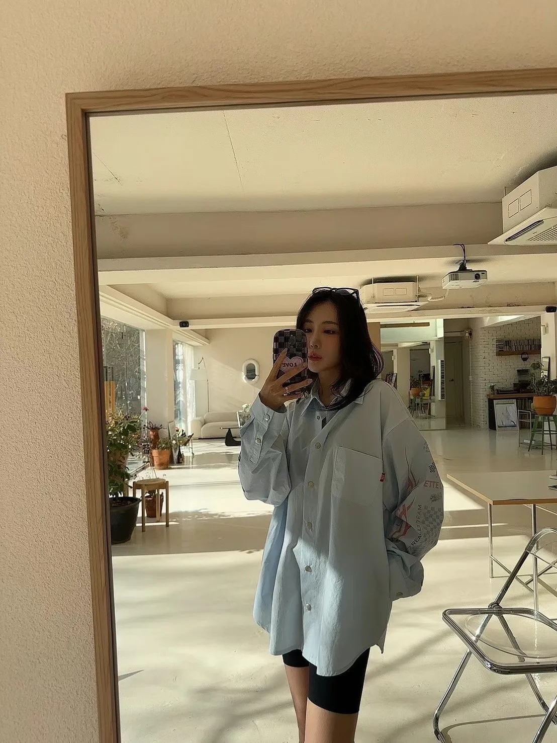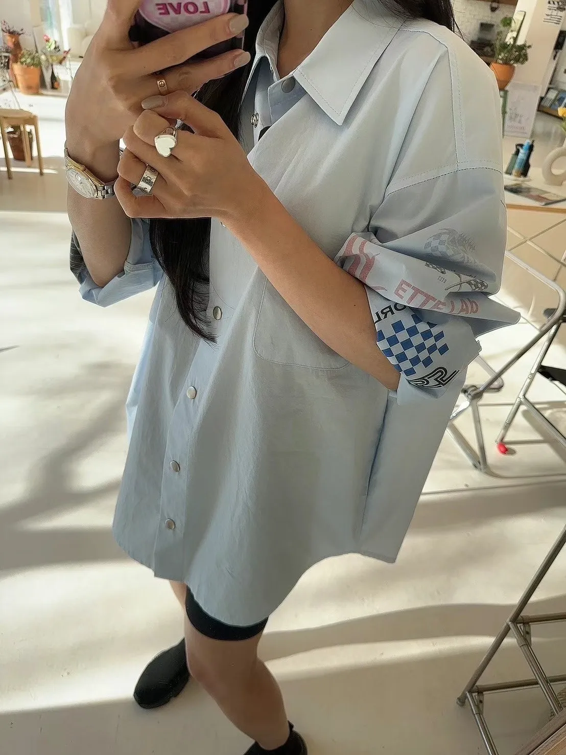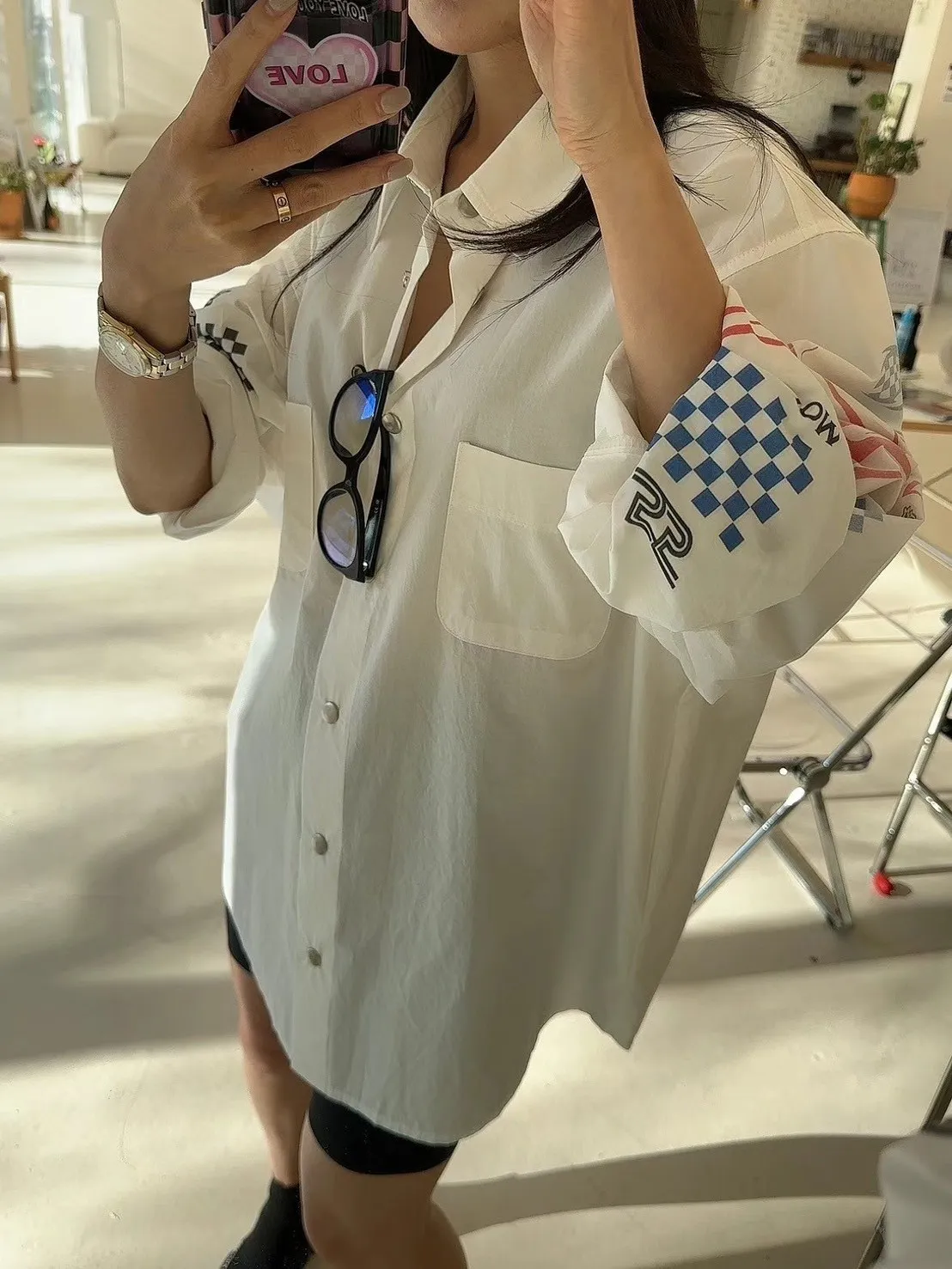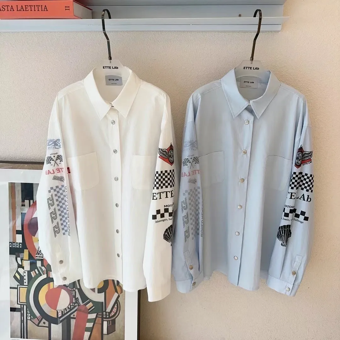 CM019潮流賽車輕盈雙口袋襯衫 白 藍 官網價$1590 線上價$1560