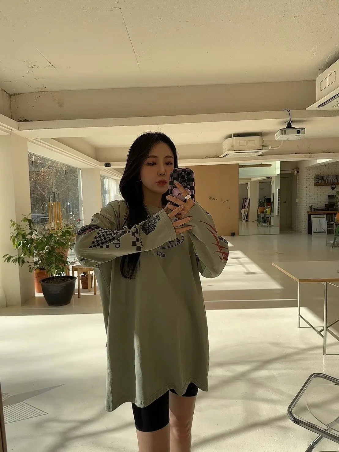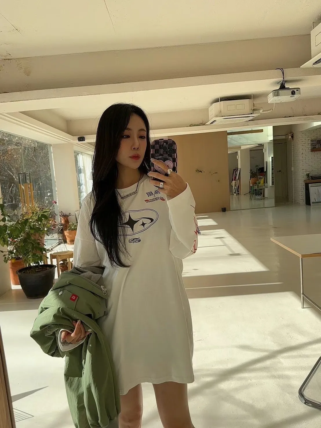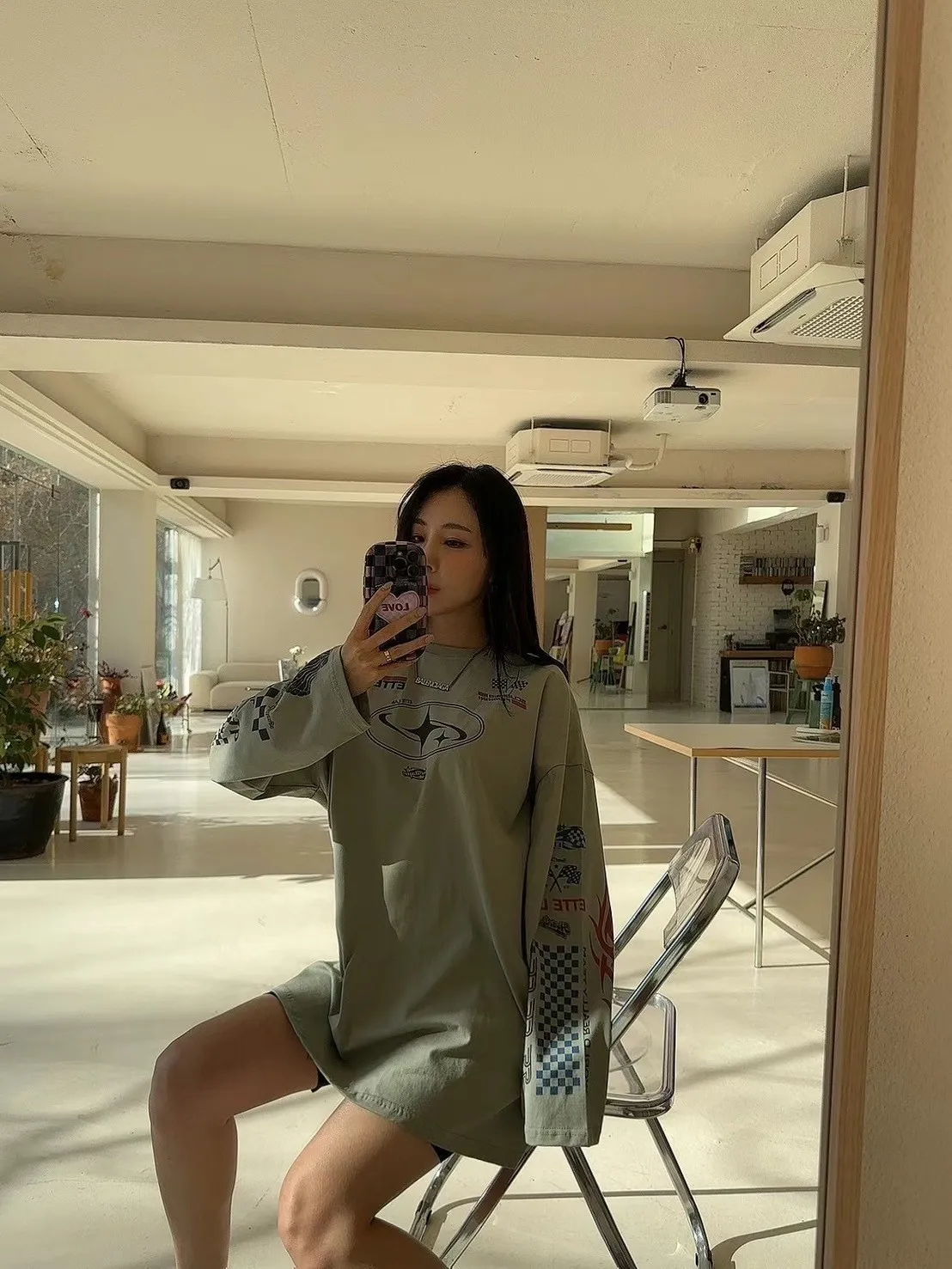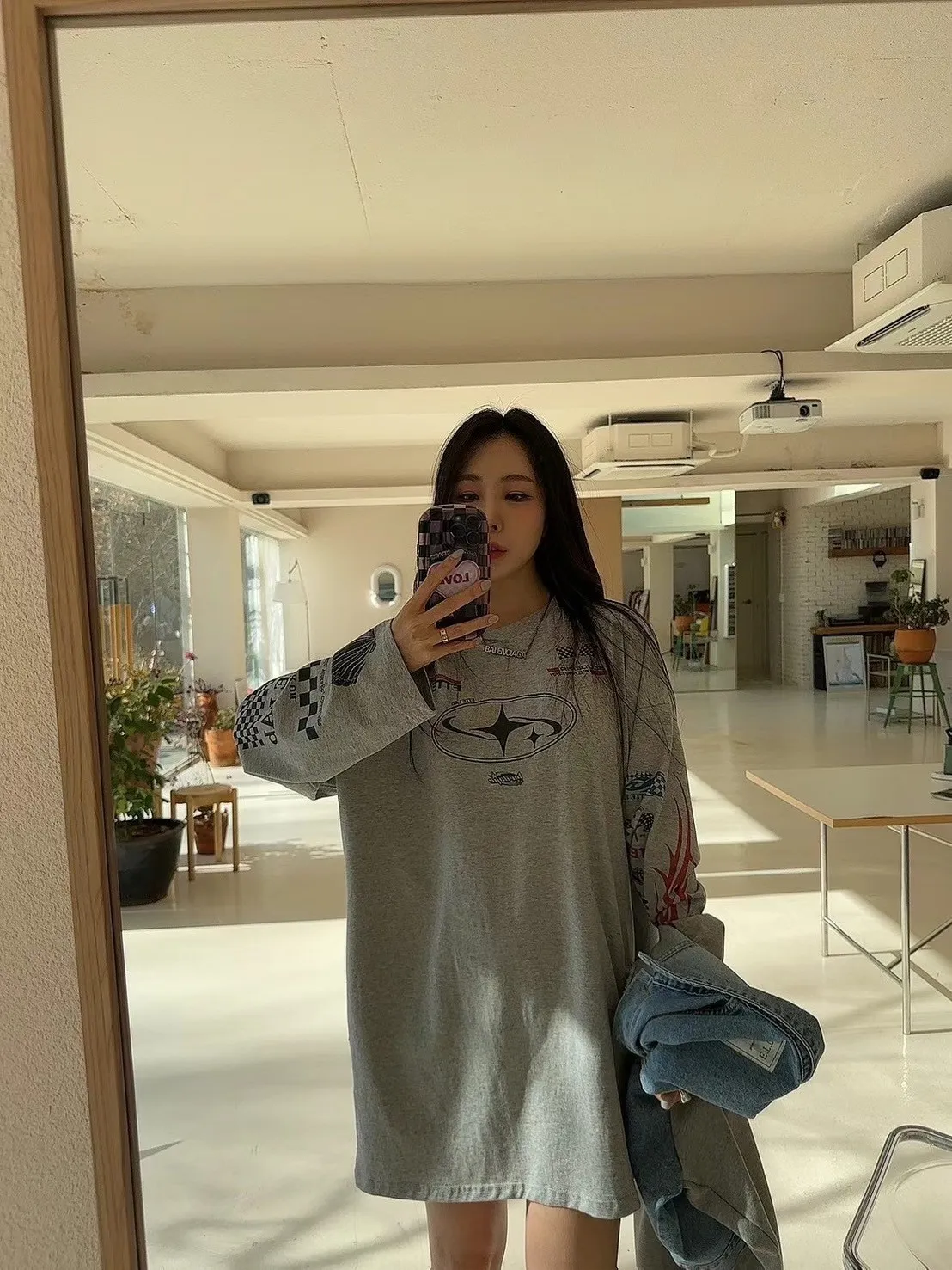 CM021星星賽車格落肩長袖大學T 白 綠 灰 官網價$990 線上價$960