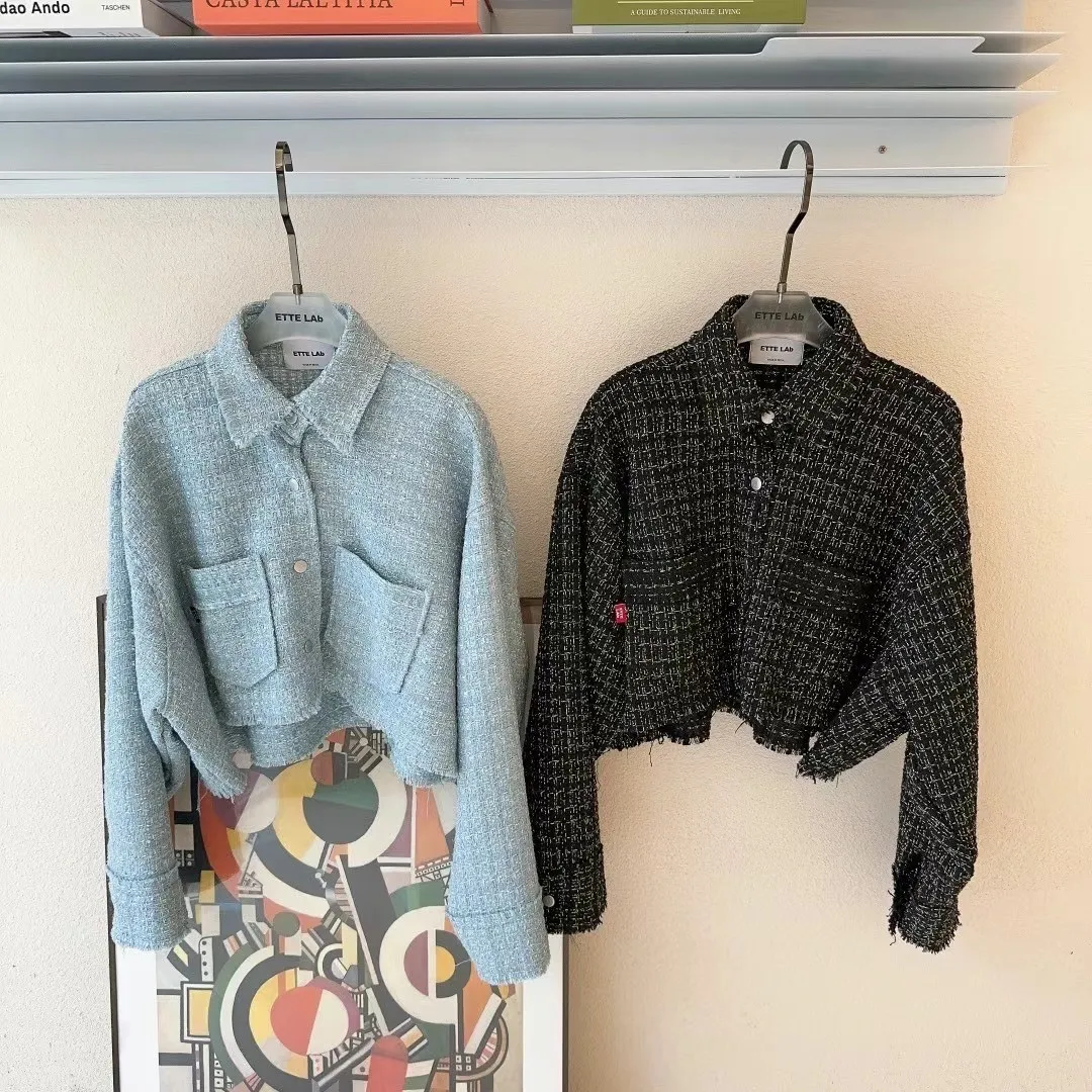 CM027不收邊雙口袋小香風外套 藍 黑 官網價$1580 線上價$1550