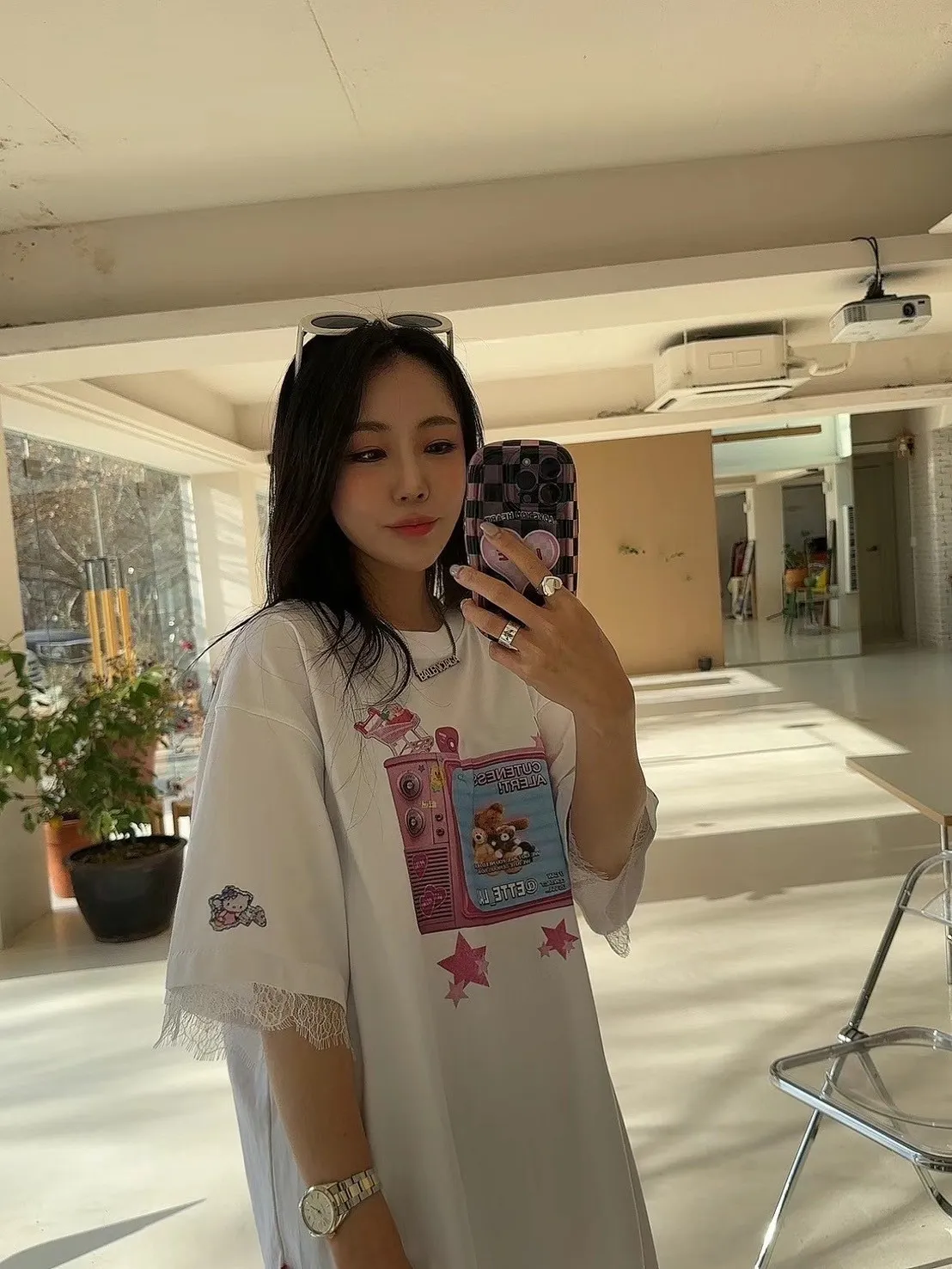 CM032可愛電視睫毛蕾絲短袖 Tshirt 白 灰 官網價$1090 線上價$1060